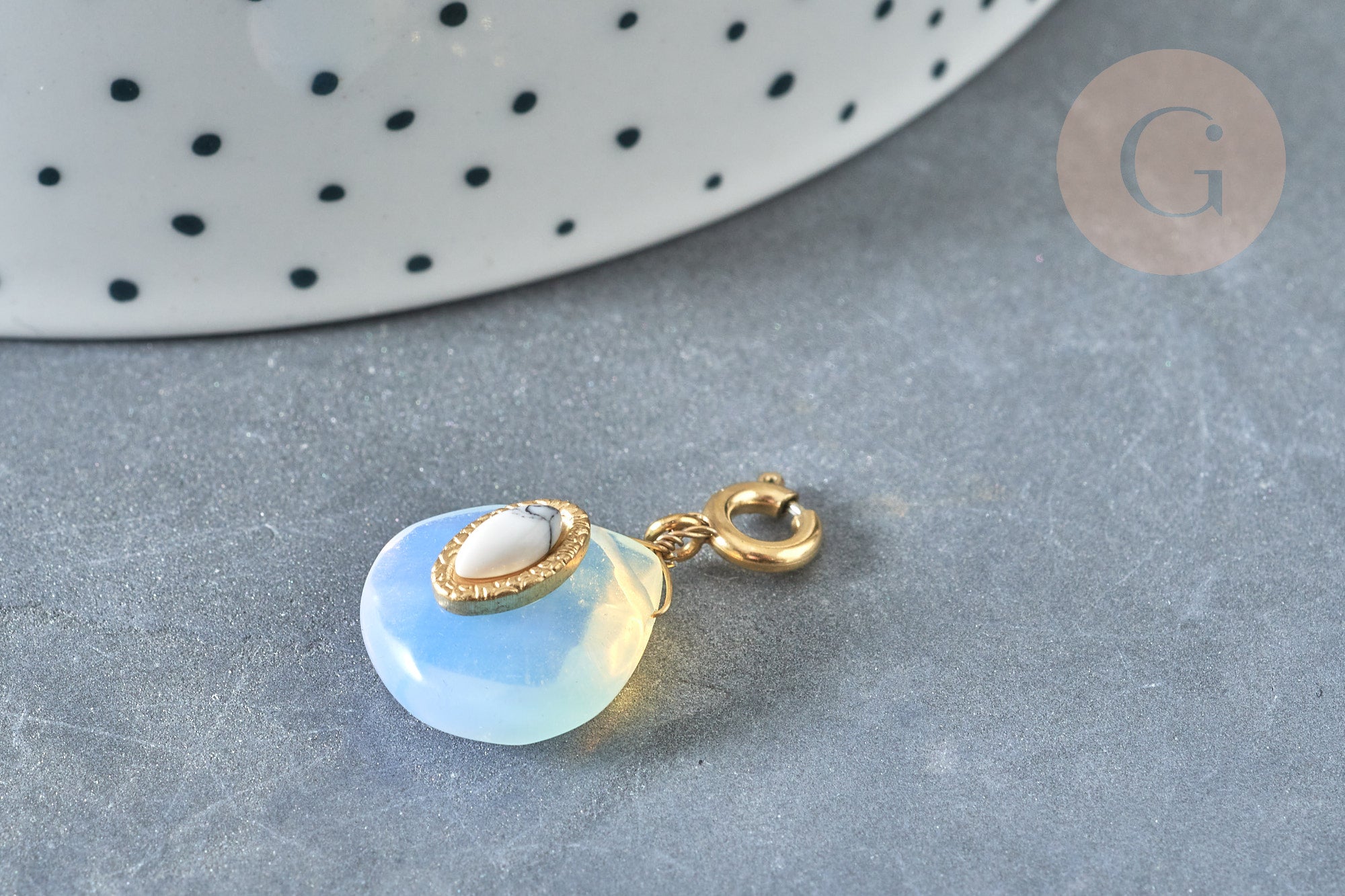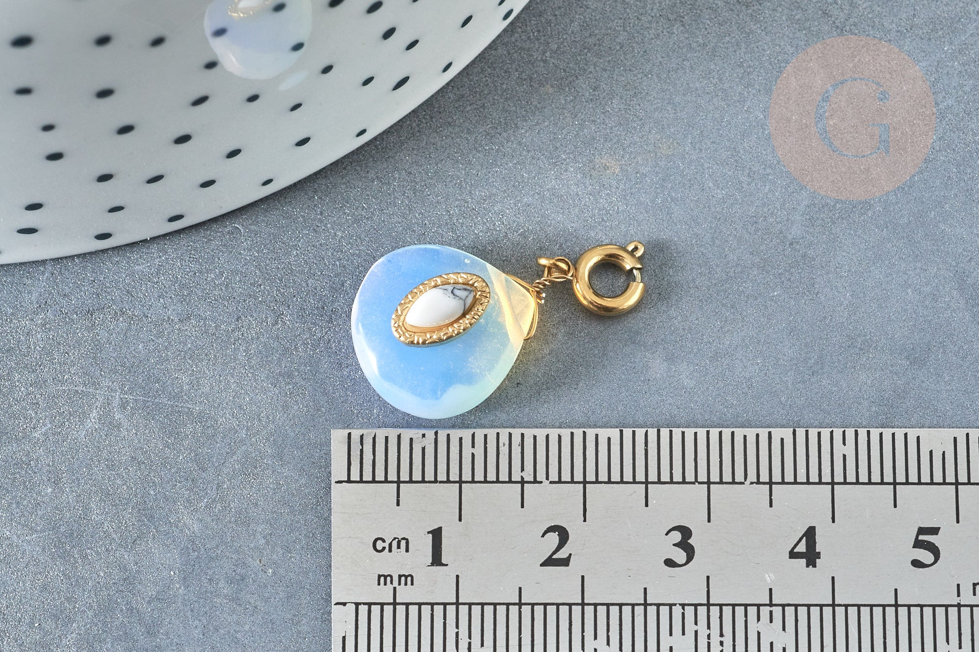 EP-Pendant drop amulet opalite stainless steel gold 21mm, x1 G7643