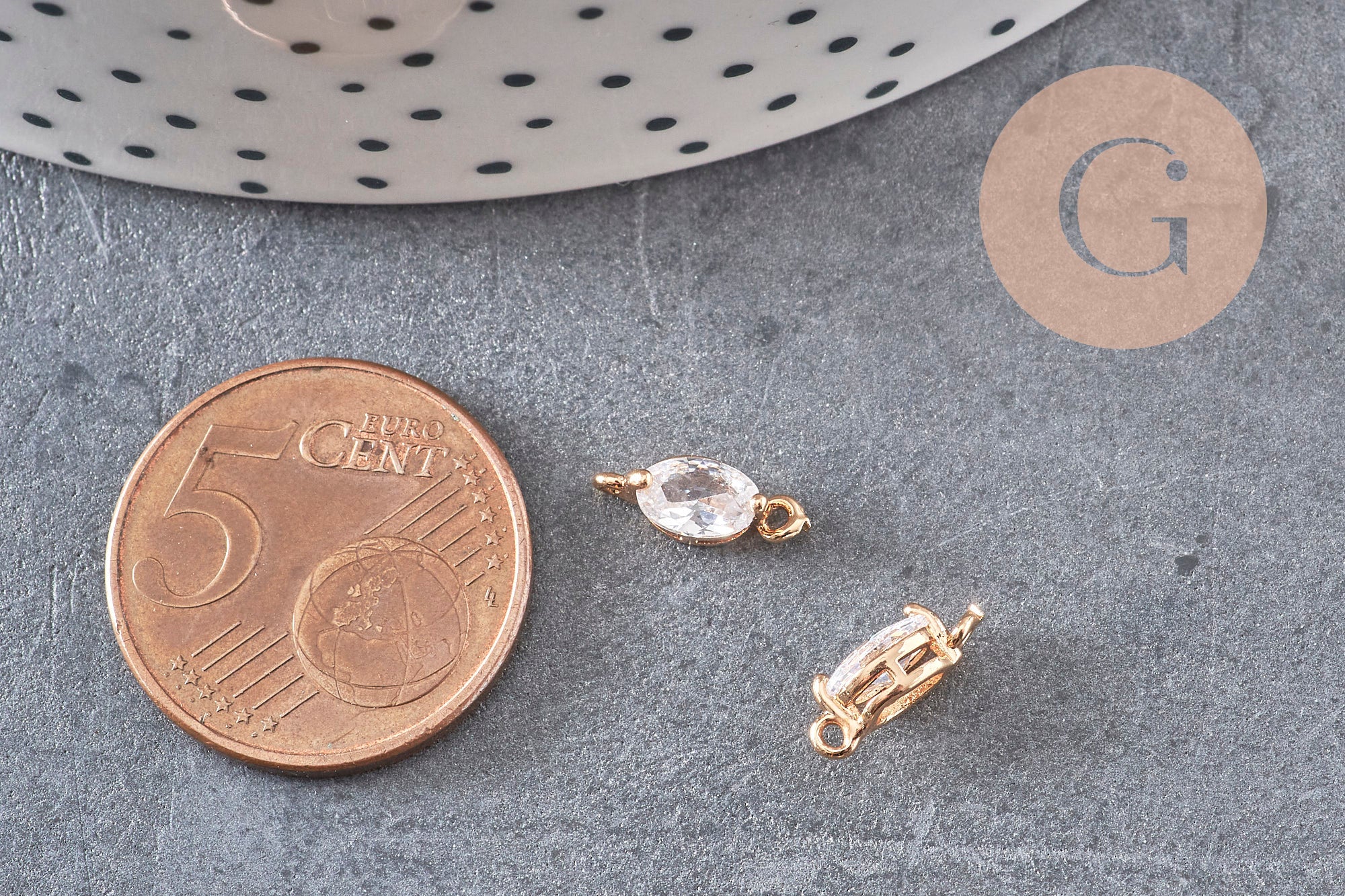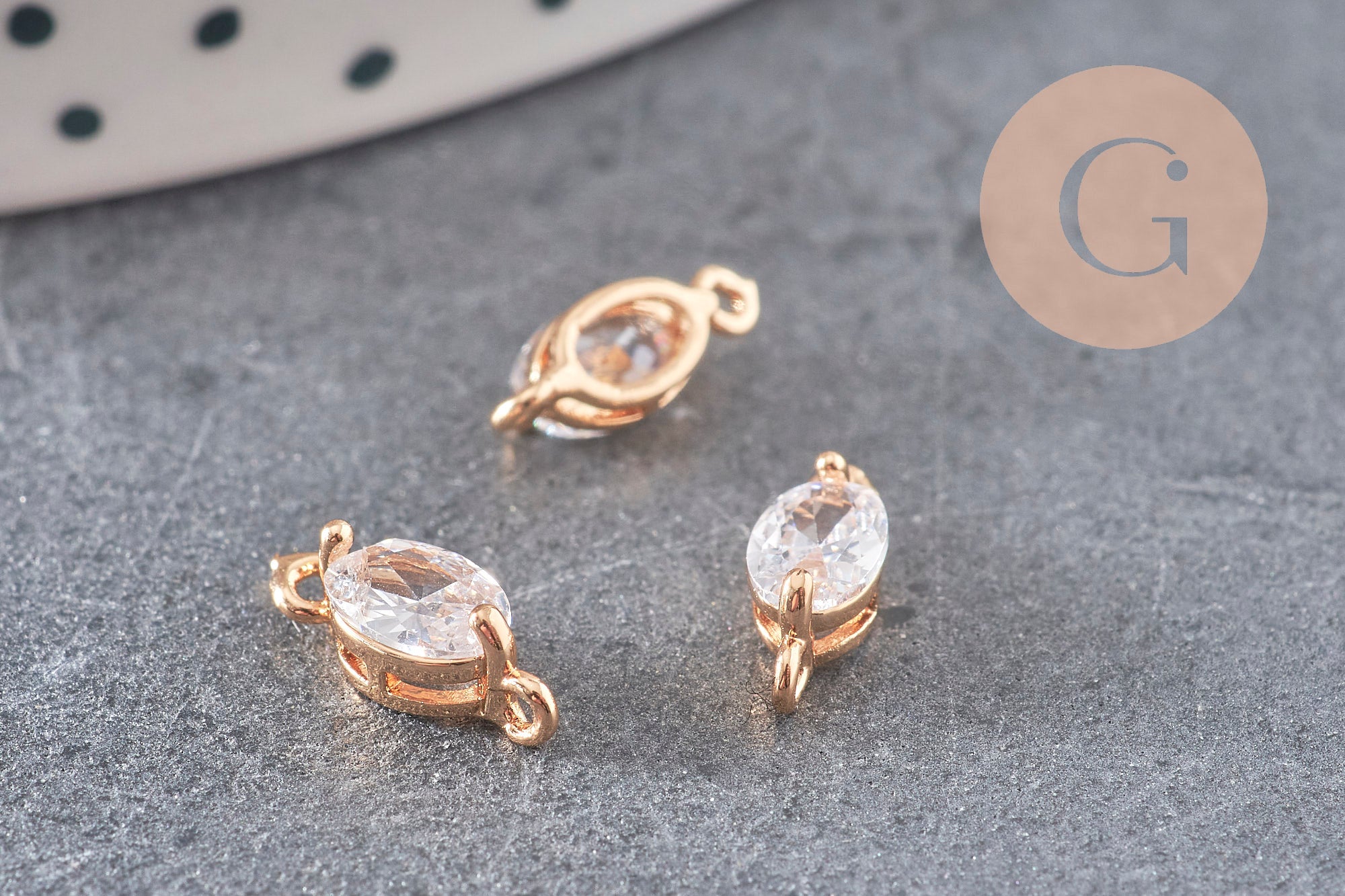 • Material: faceted white zircon and 24K fine gold-plated brass