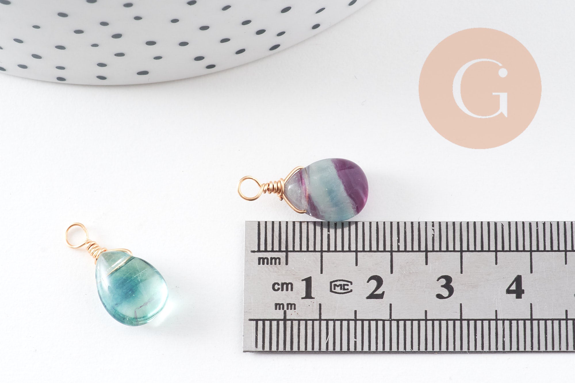 Fall for this natural fluorite pendant with its golden copper support.