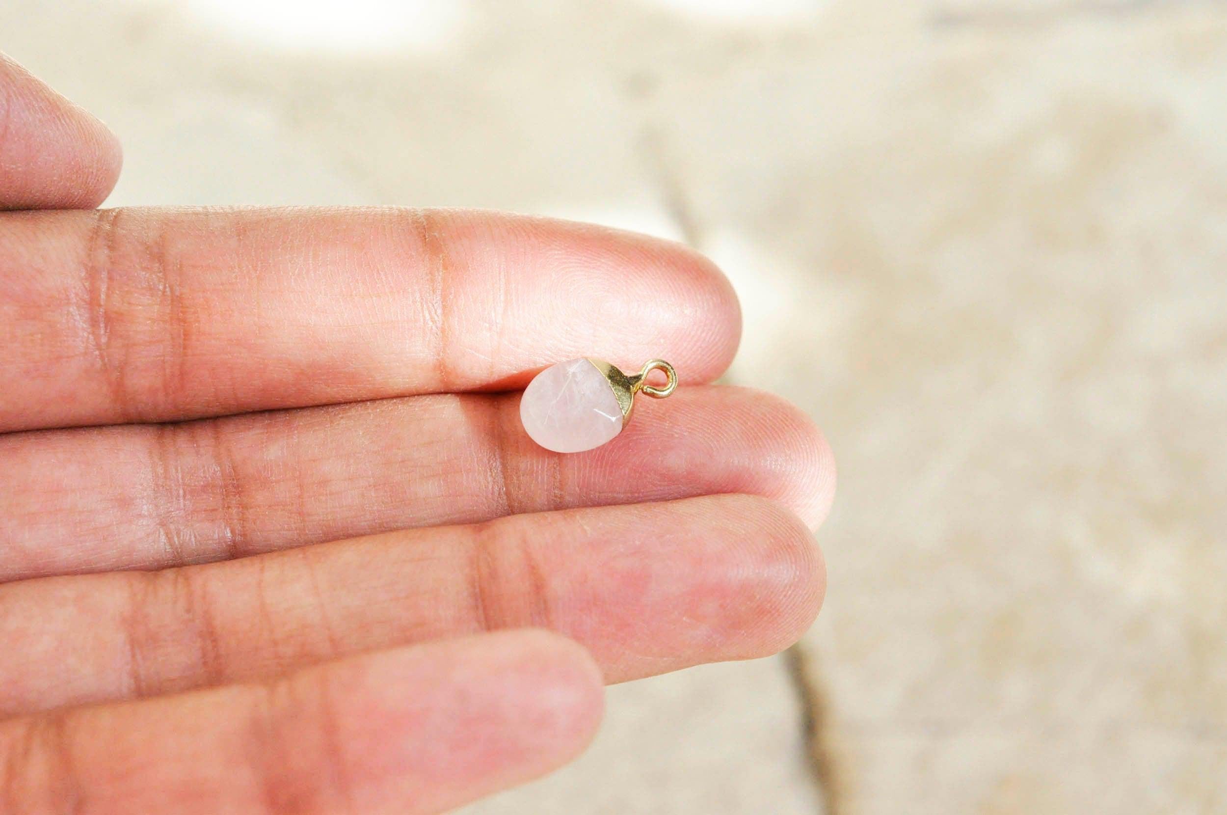 Fall for this very discreet little strawberry quartz pendant with its golden iron support.
