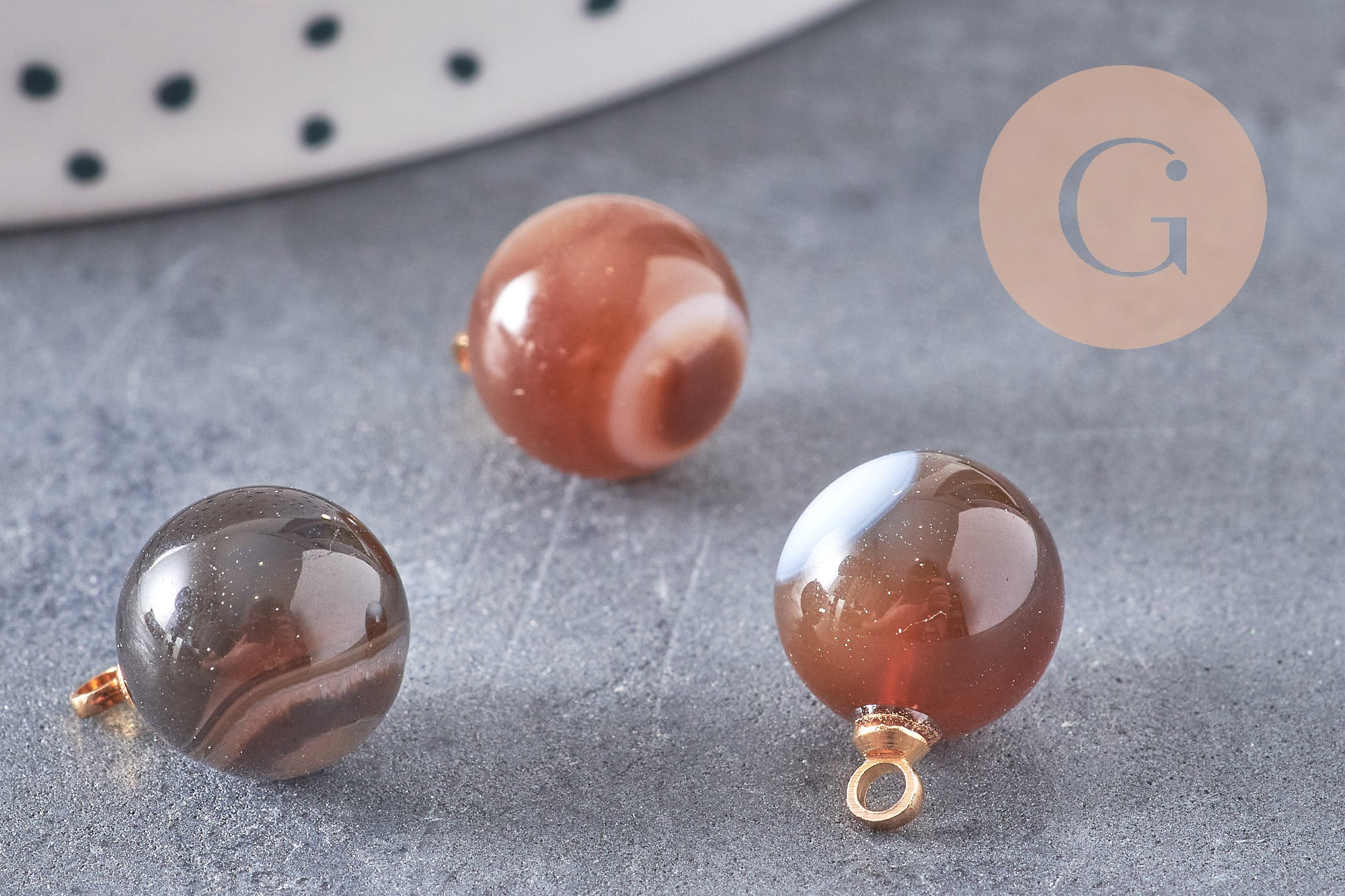 Its elegant stone, with its dark hues and white veining, creates a refined contrast, enhanced by a gold-plated brass setting . Perfect for jewelry that is both modern and sophisticated.