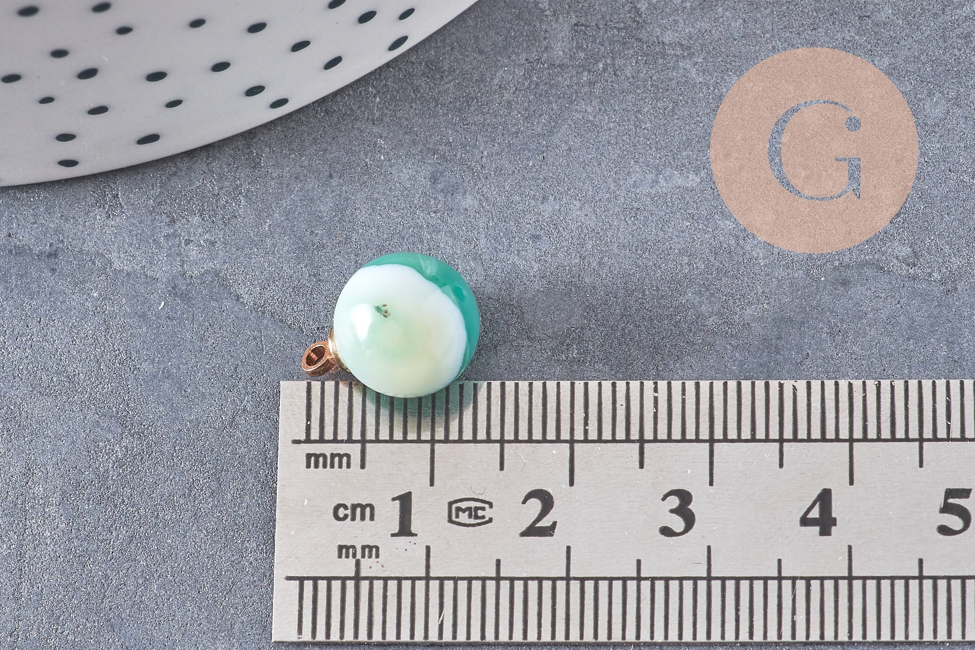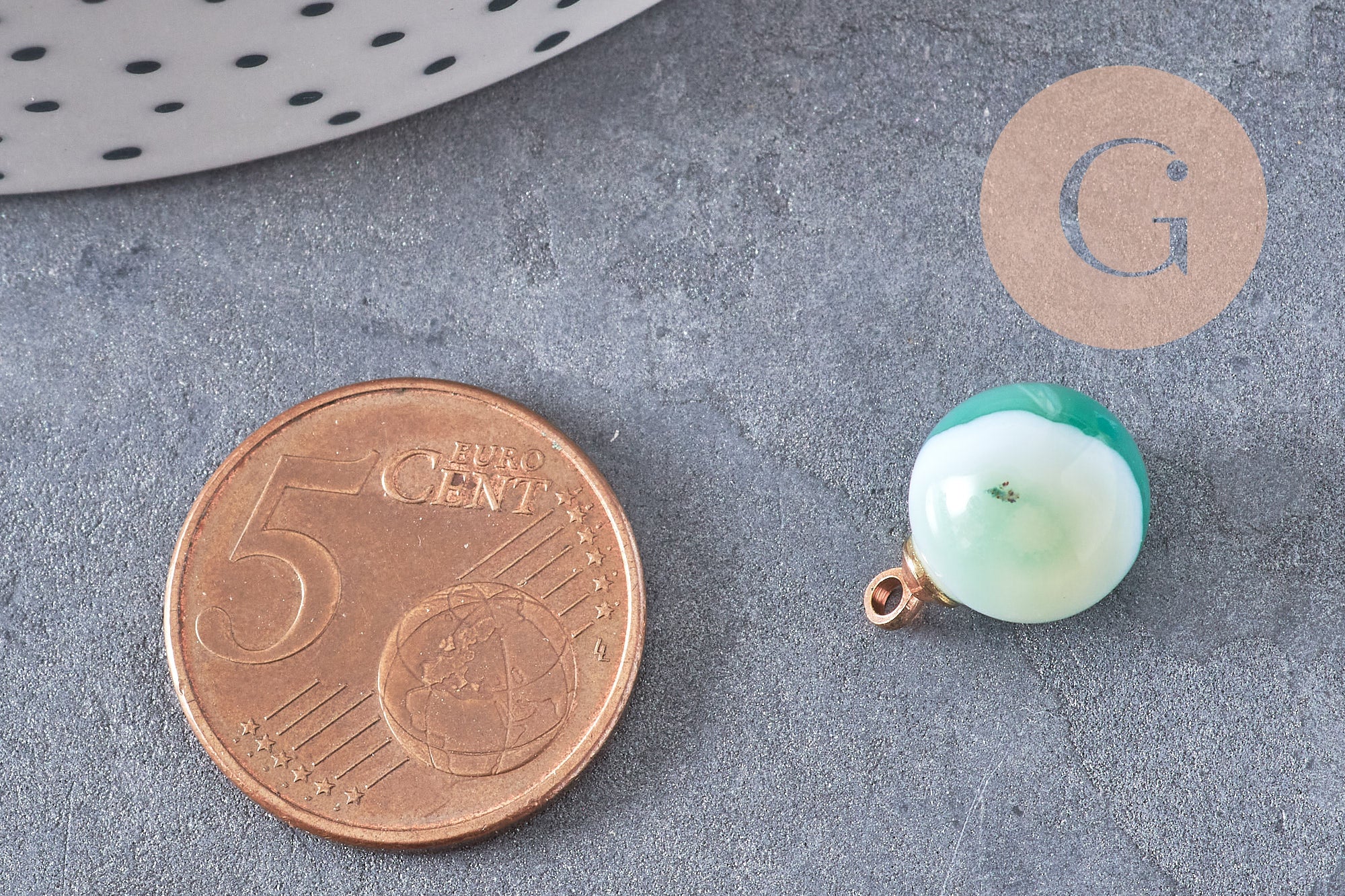 Round green striped agate drop pendant, gold support, natural stone jewelry creation, natural stone pendant, 14mm, unit