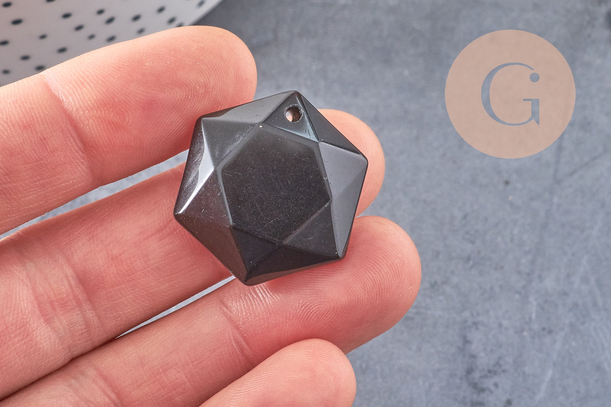 Obsidian hexagon pendant, creative supplies, stone pendant, natural obsidian, jewelry creation, natural stone, 29mm
