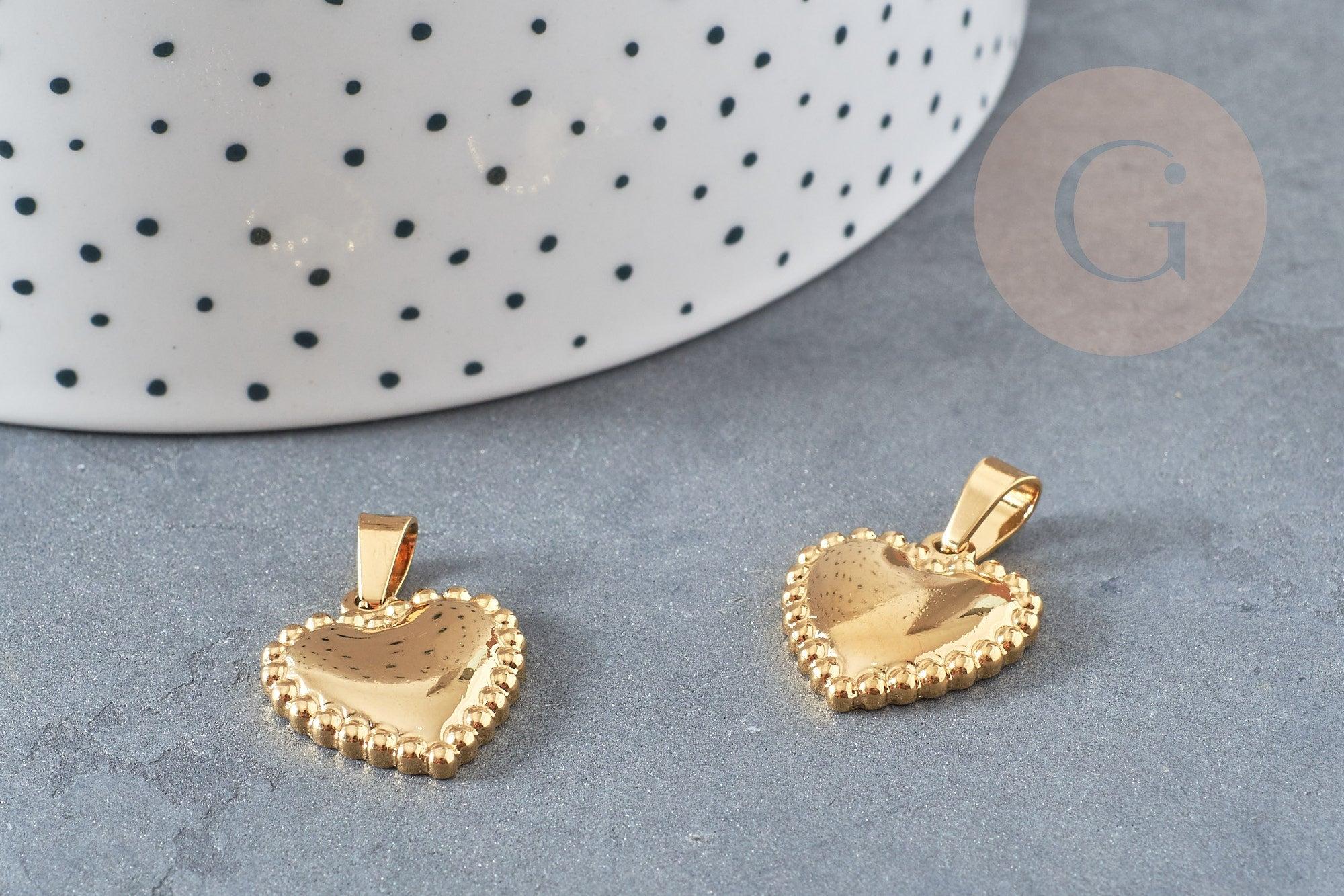 Gold steel heart medal pendant, gold steel pendant, nickel-free, gold steel, jewelry creation, steel medal, 19mm