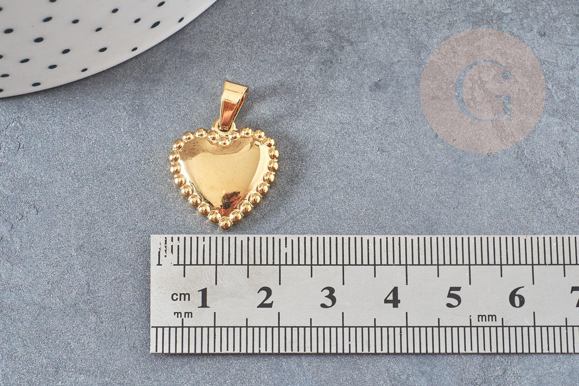 A pretty golden heart-shaped medal decorated with small spheres around the edge.