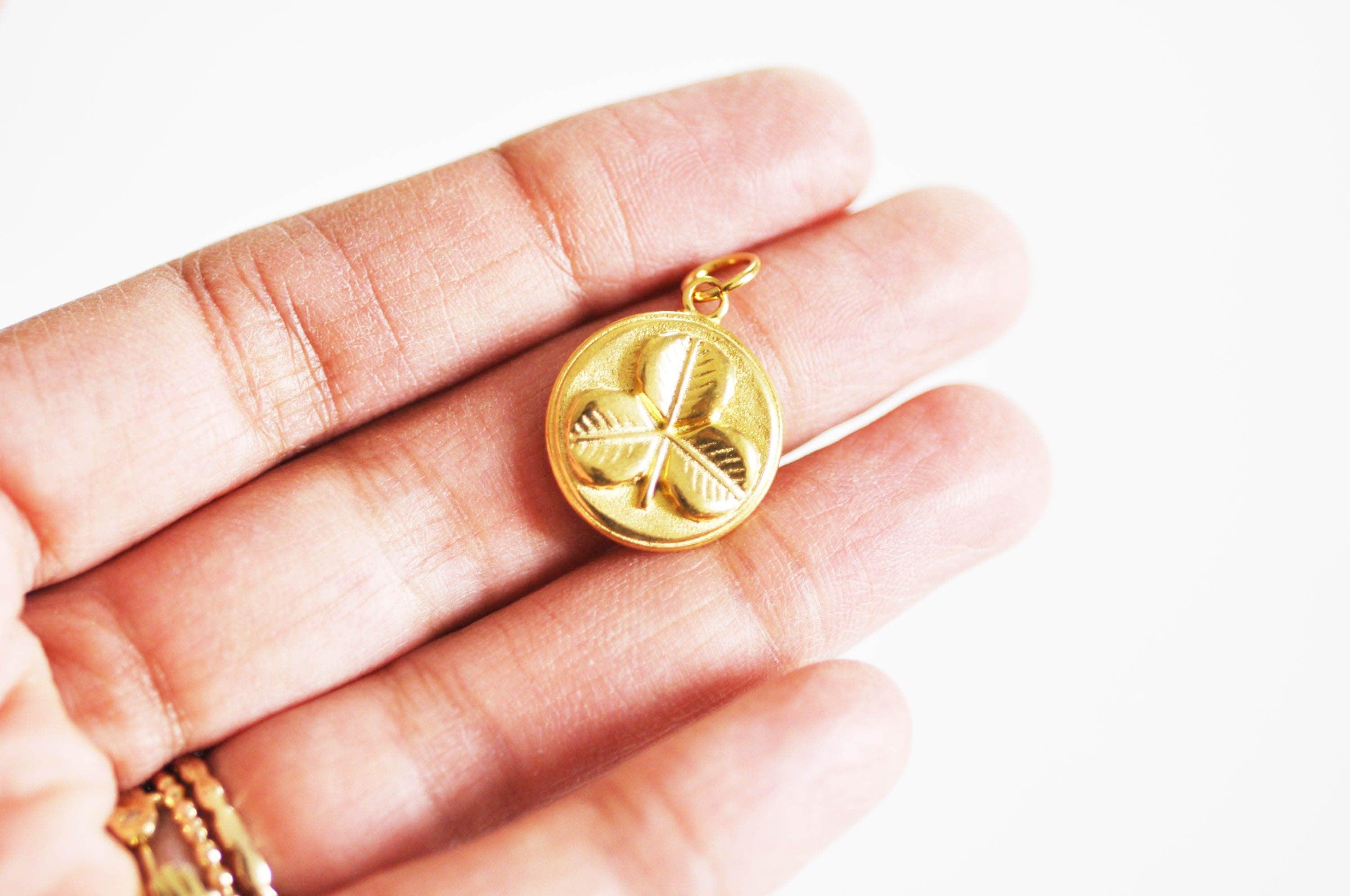 EP-Round clover medal pendant 304 stainless steel gold 23mm, x1 -G0815