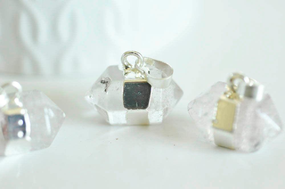 Transparent crystal point pendant, creative supply, jewelry pendant, stone pendant, natural crystal, crystal pendant, silver pendant, 22mm