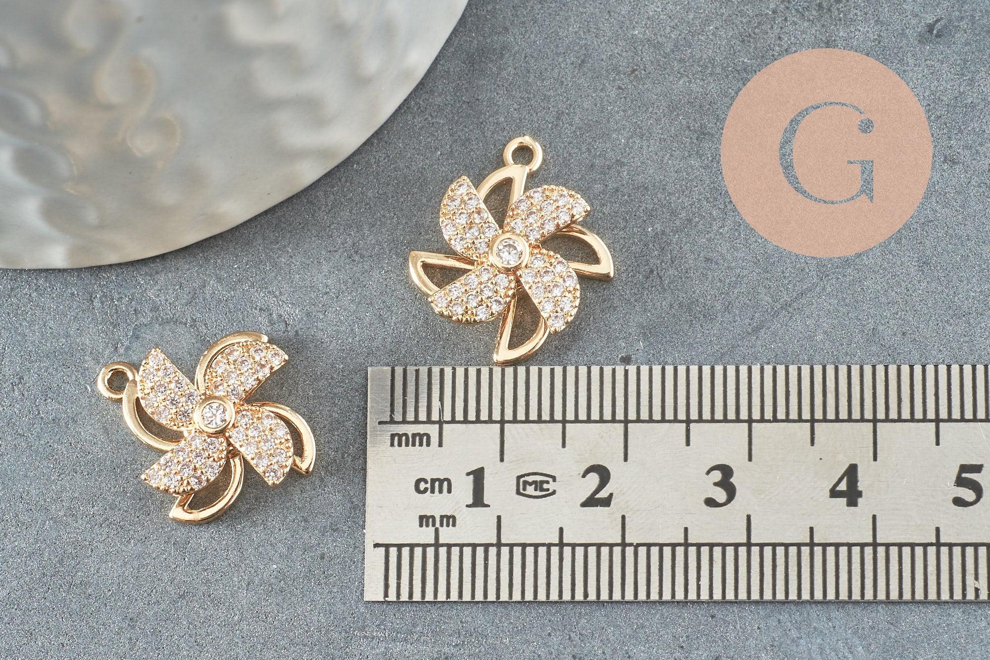 This rotating windmill pendant in 18K gold-plated brass is a poetic and luminous piece that will turn gently with your every movement. Decorated with sparkling white zircons, it will add a refined and enchanting touch to your DIY creations.