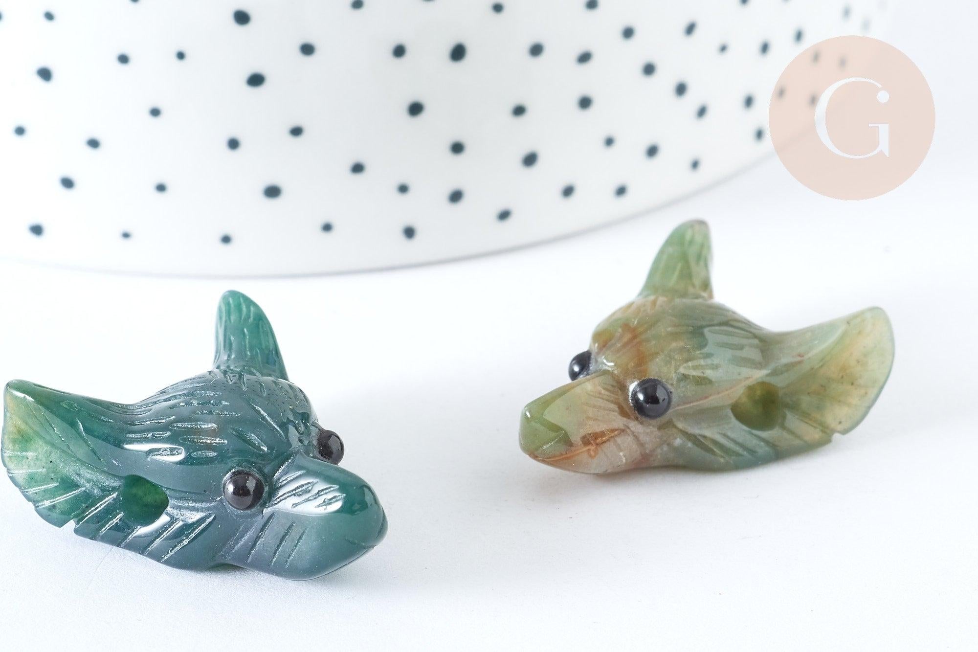 Surprise those around you with this wolf head pendant carved in Indian agate ! It will allow you to create original natural stone jewelry.