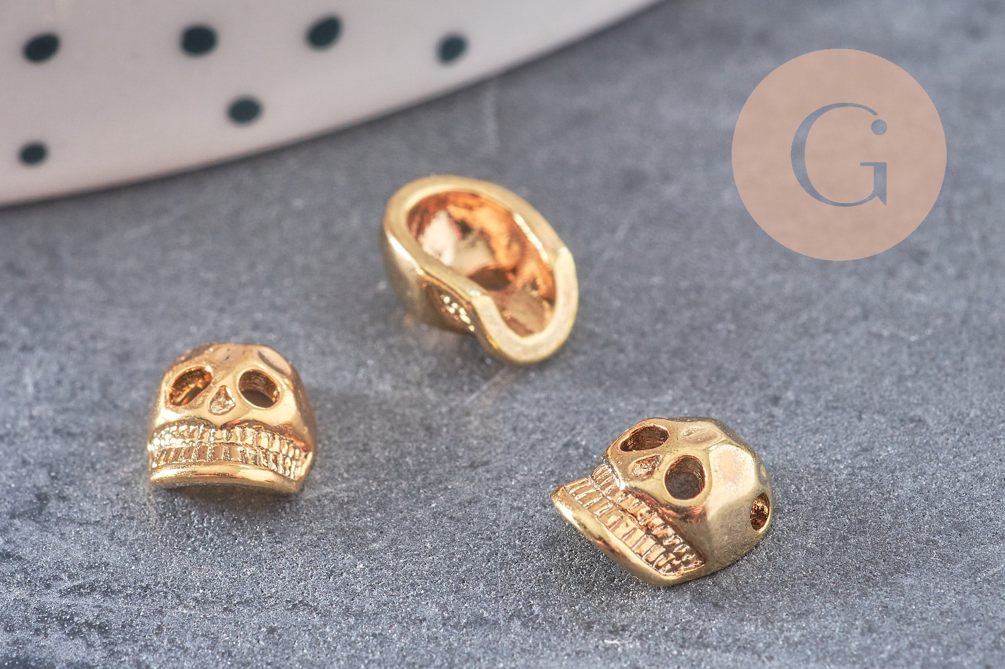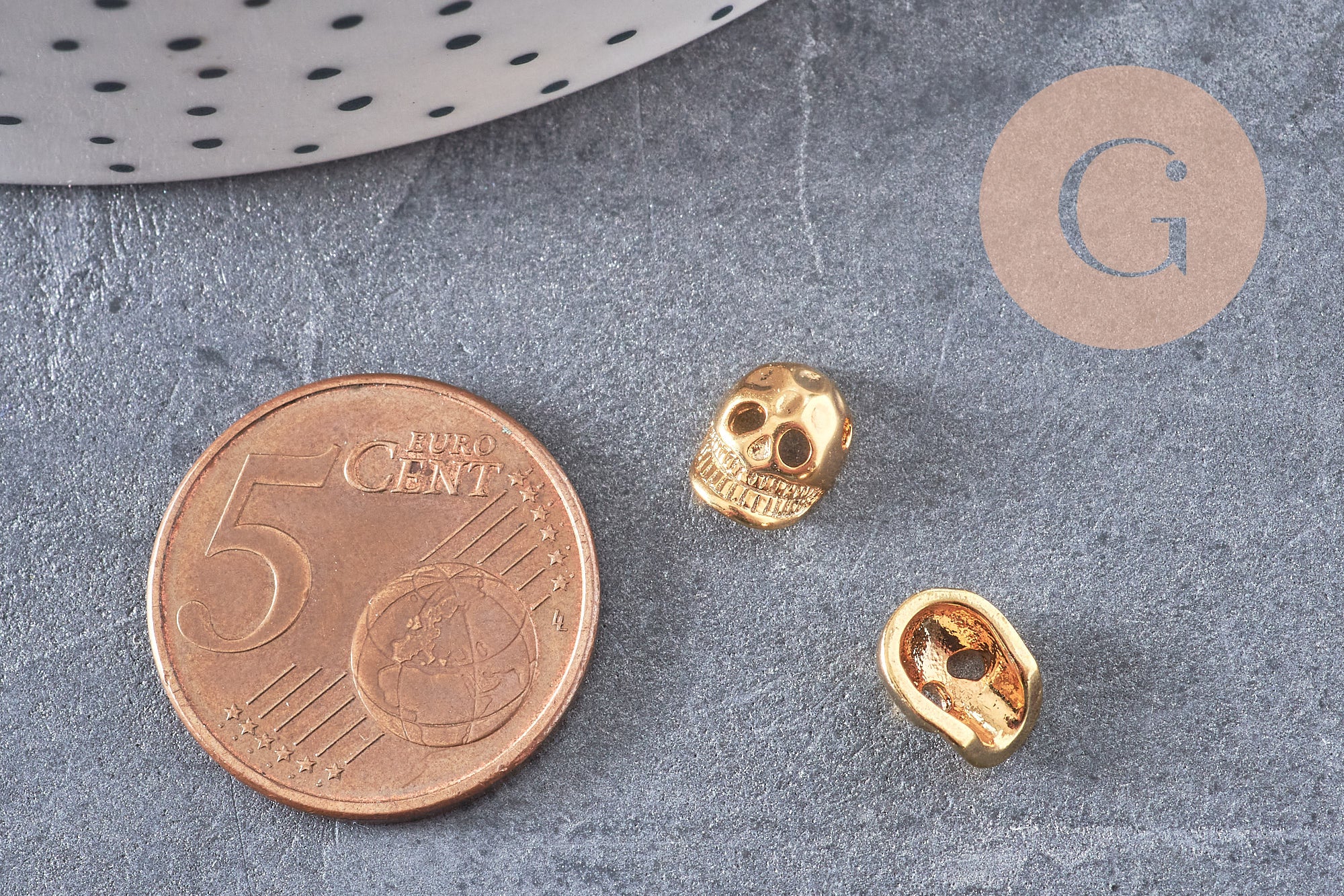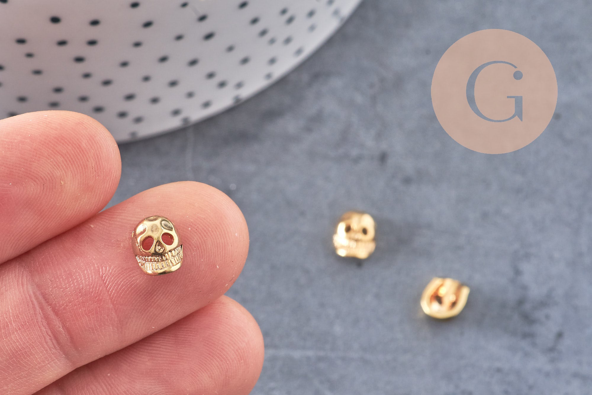 Gold-plated brass skull pendant 2.5 microns, nickel-free pendant, gold-plated jewelry creation, gold-plated brass pendant, 9mm, set of 2