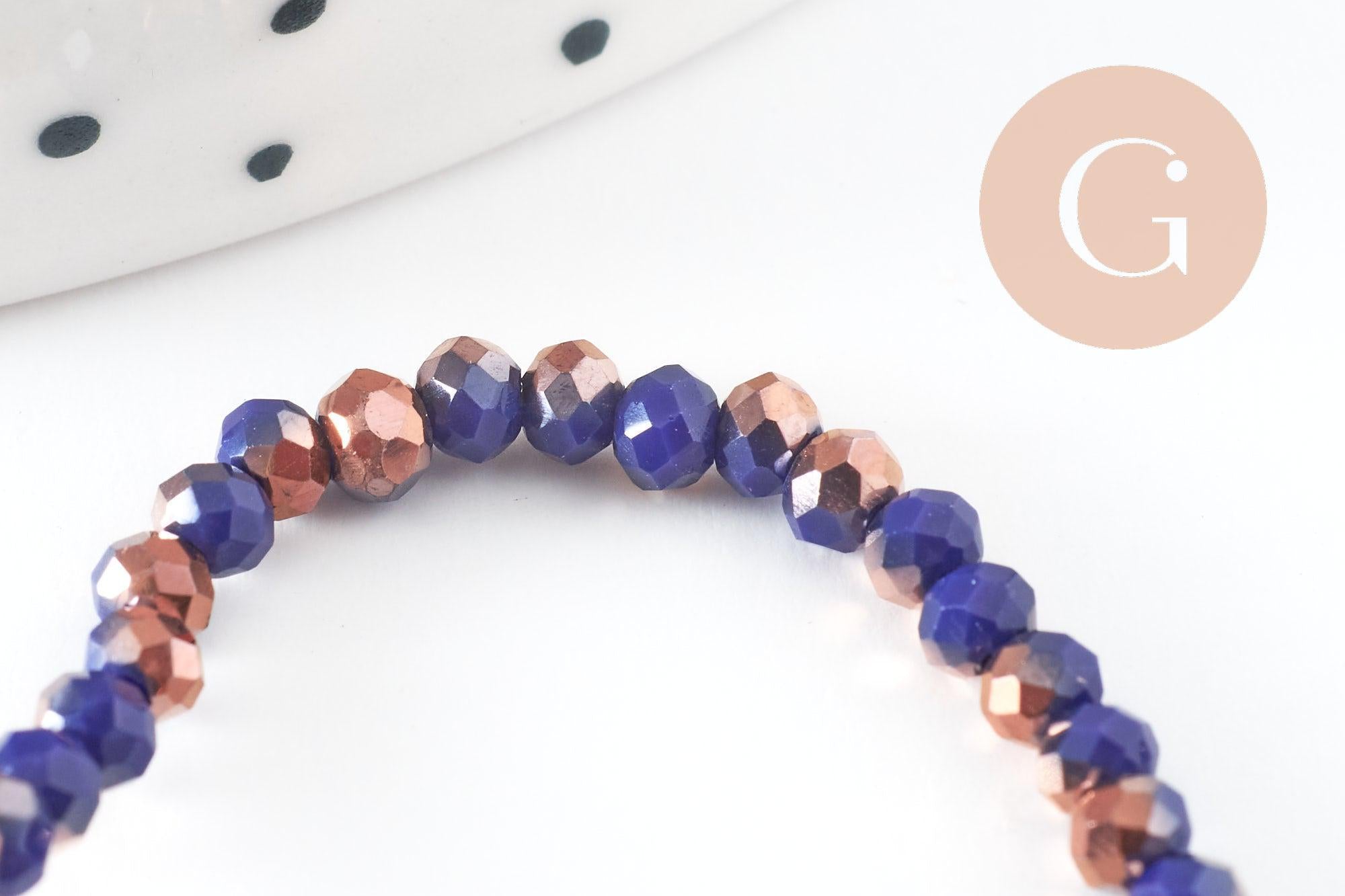 Enhance your creations with this thread of abacus beads in faceted blue and gold crystal . Each pearl, delicately cut, offers a unique play of light mixing deep blue reflections and sparkling golden touches.