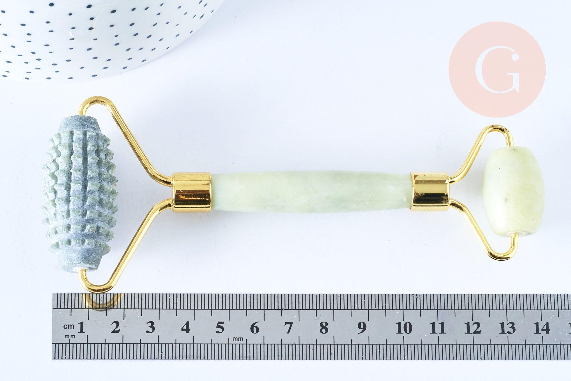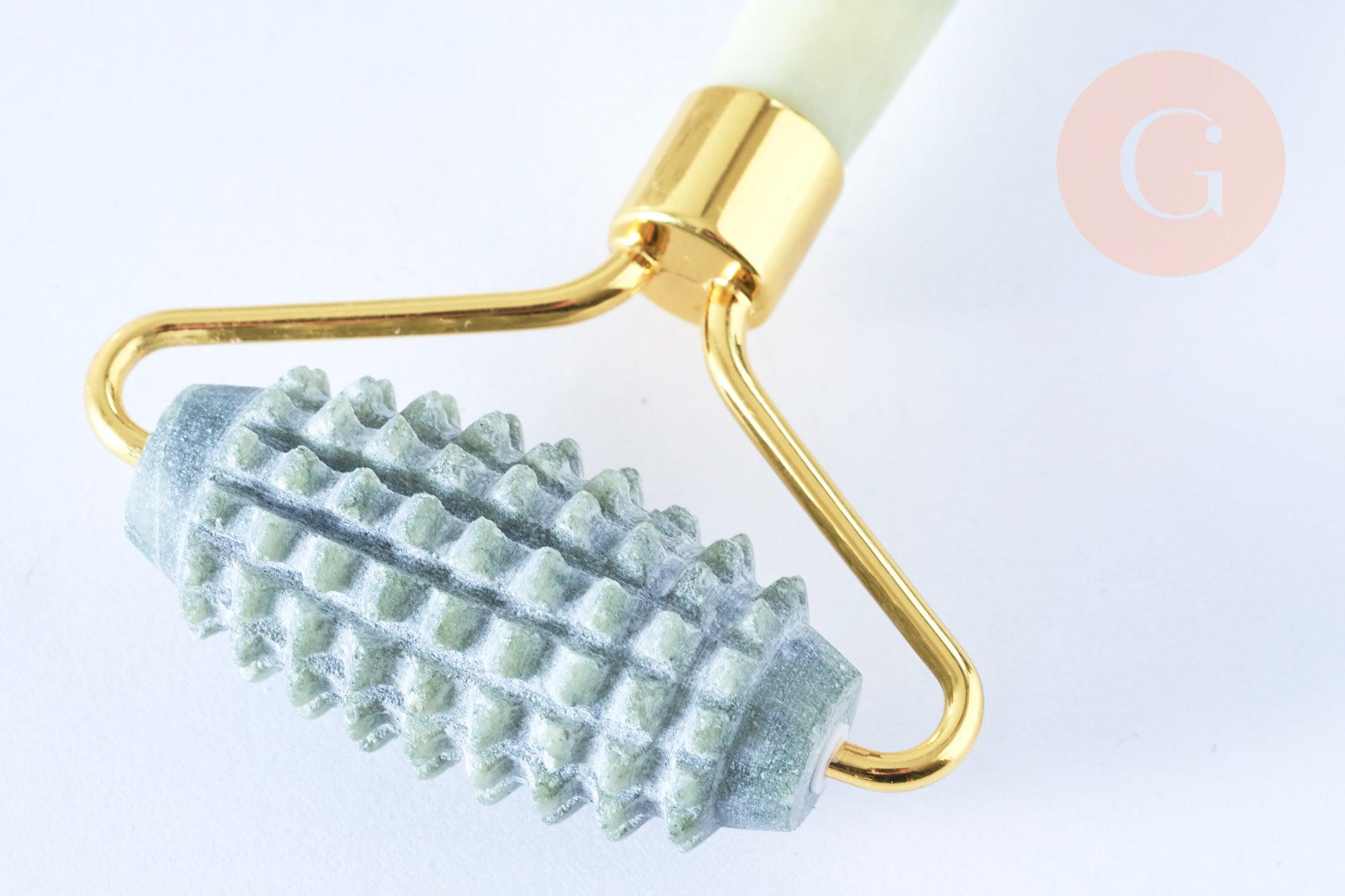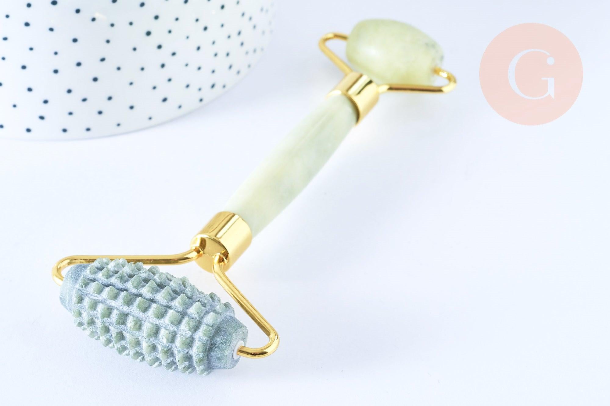 A natural jade massage roller that will stimulate tissues, promote blood circulation and lymphatic drainage.