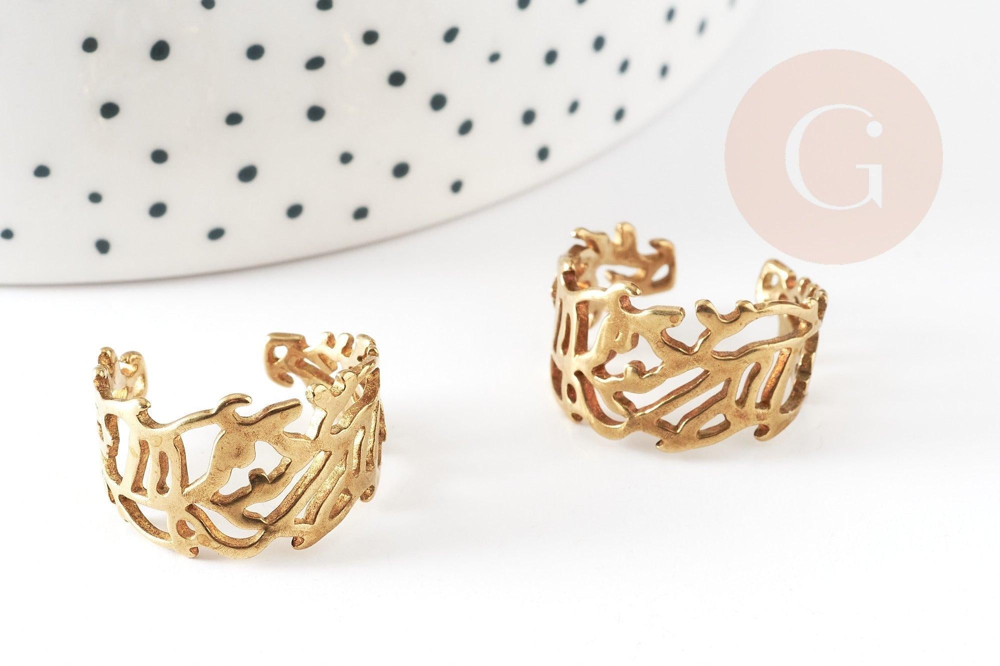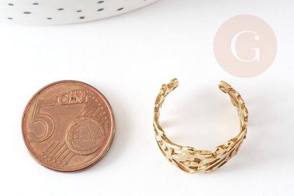 Adjustable ring branches jewelry creation, raw brass ring, natural jewelry, ring support, creative supplies, nickel free, leaf ring, 16mm, set of 2