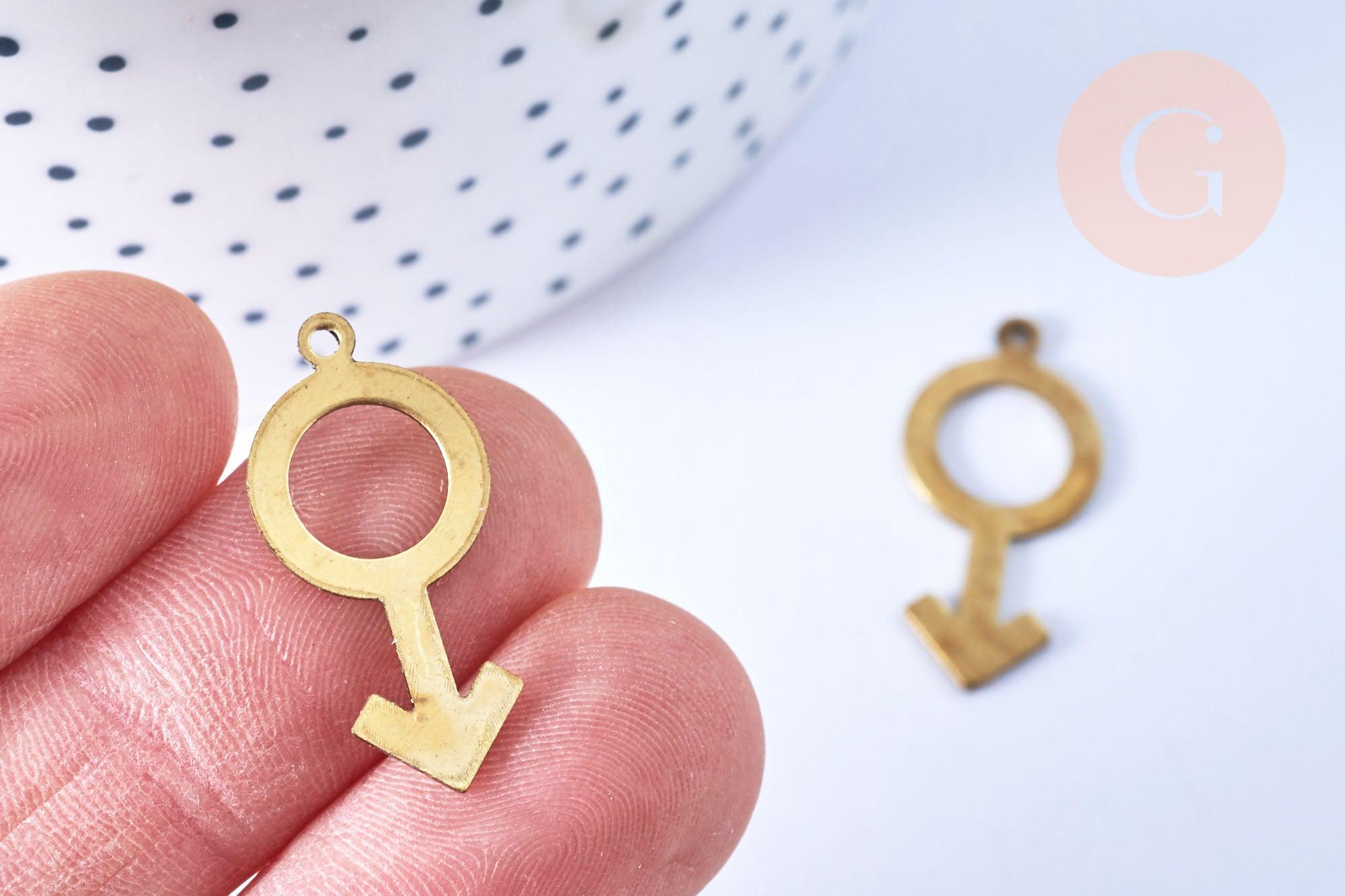 Fall for this raw brass masculing sign pendant , easy-to-use charms for all your DIY jewelry.