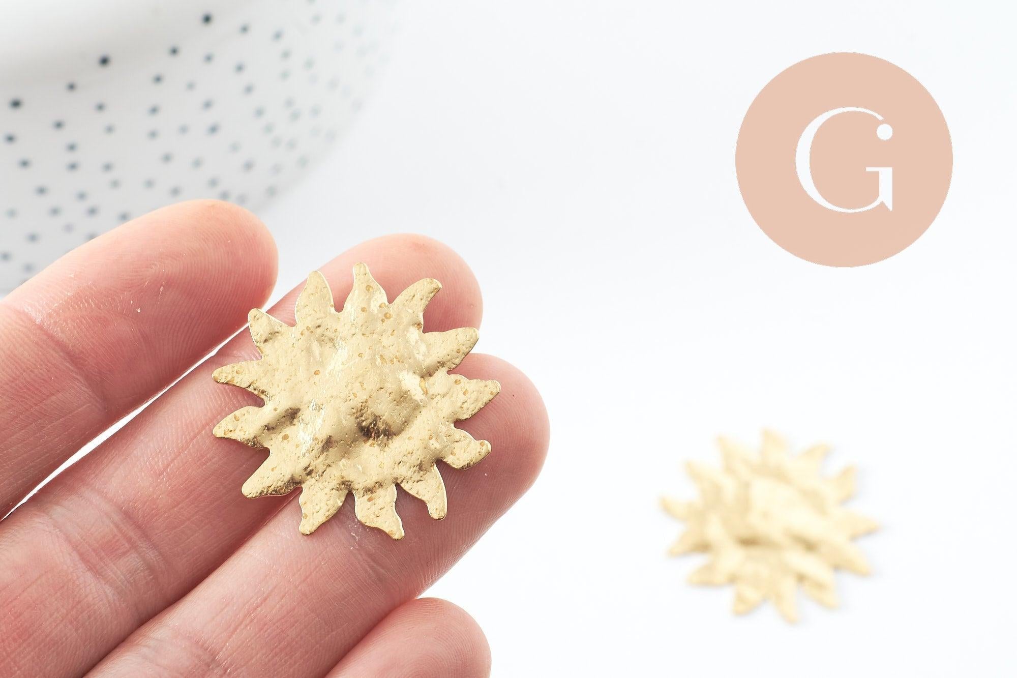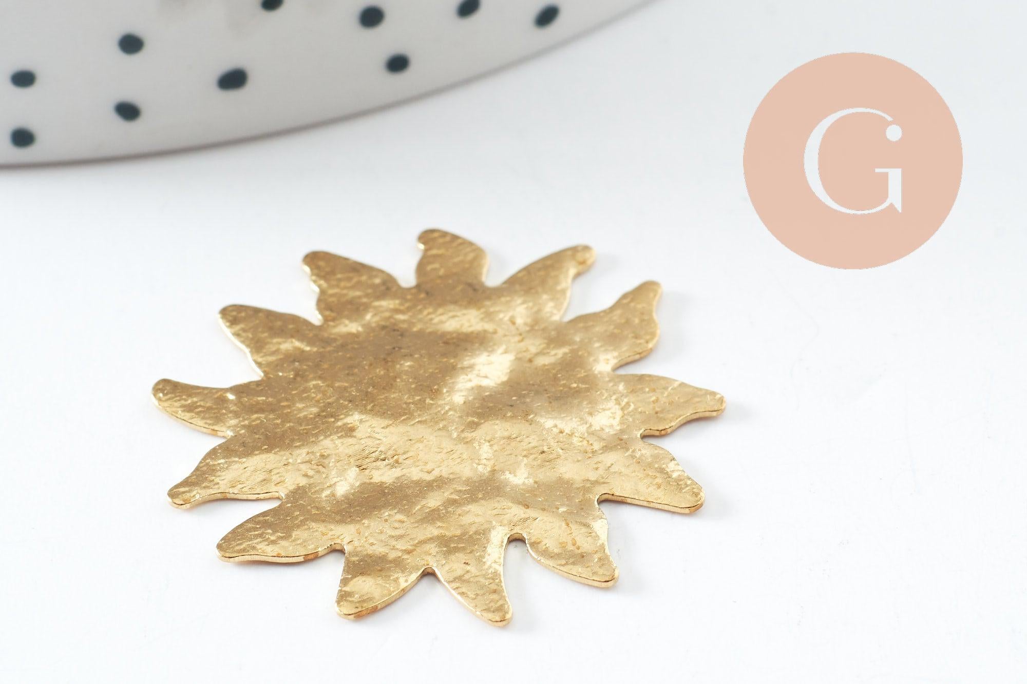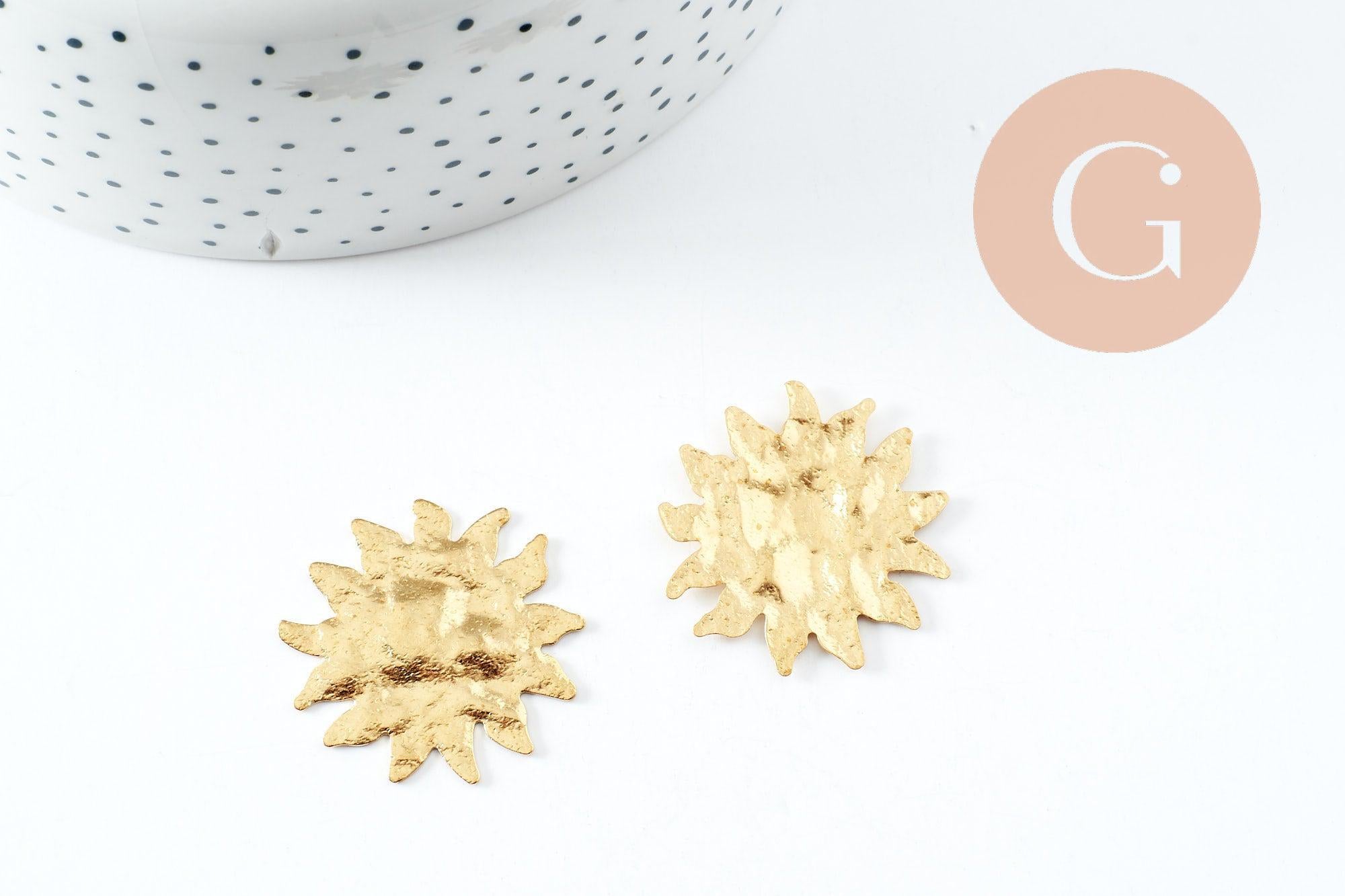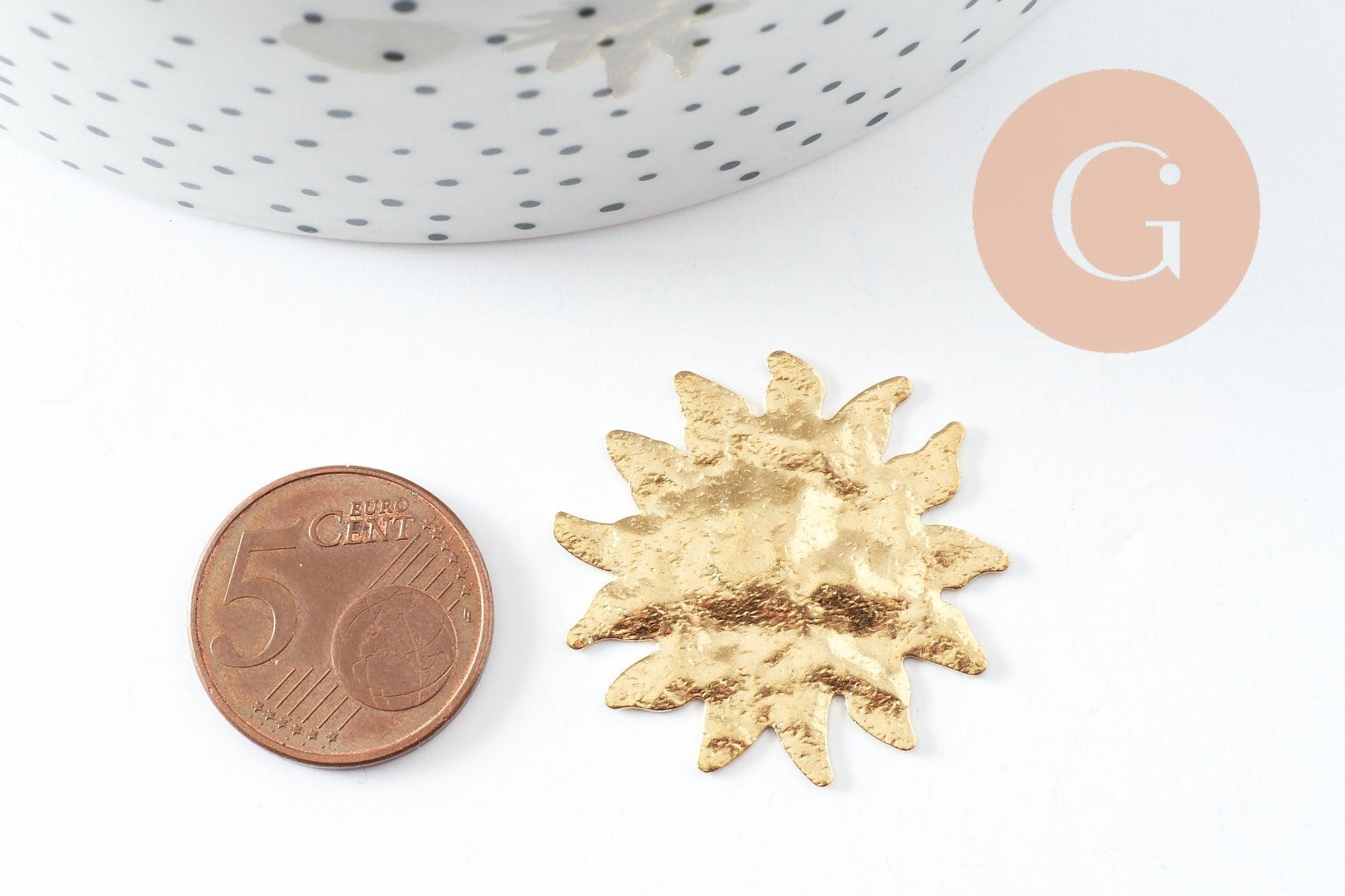 Estampe soleil martelé laiton brut 31mm Non perce, x2 (G9805)