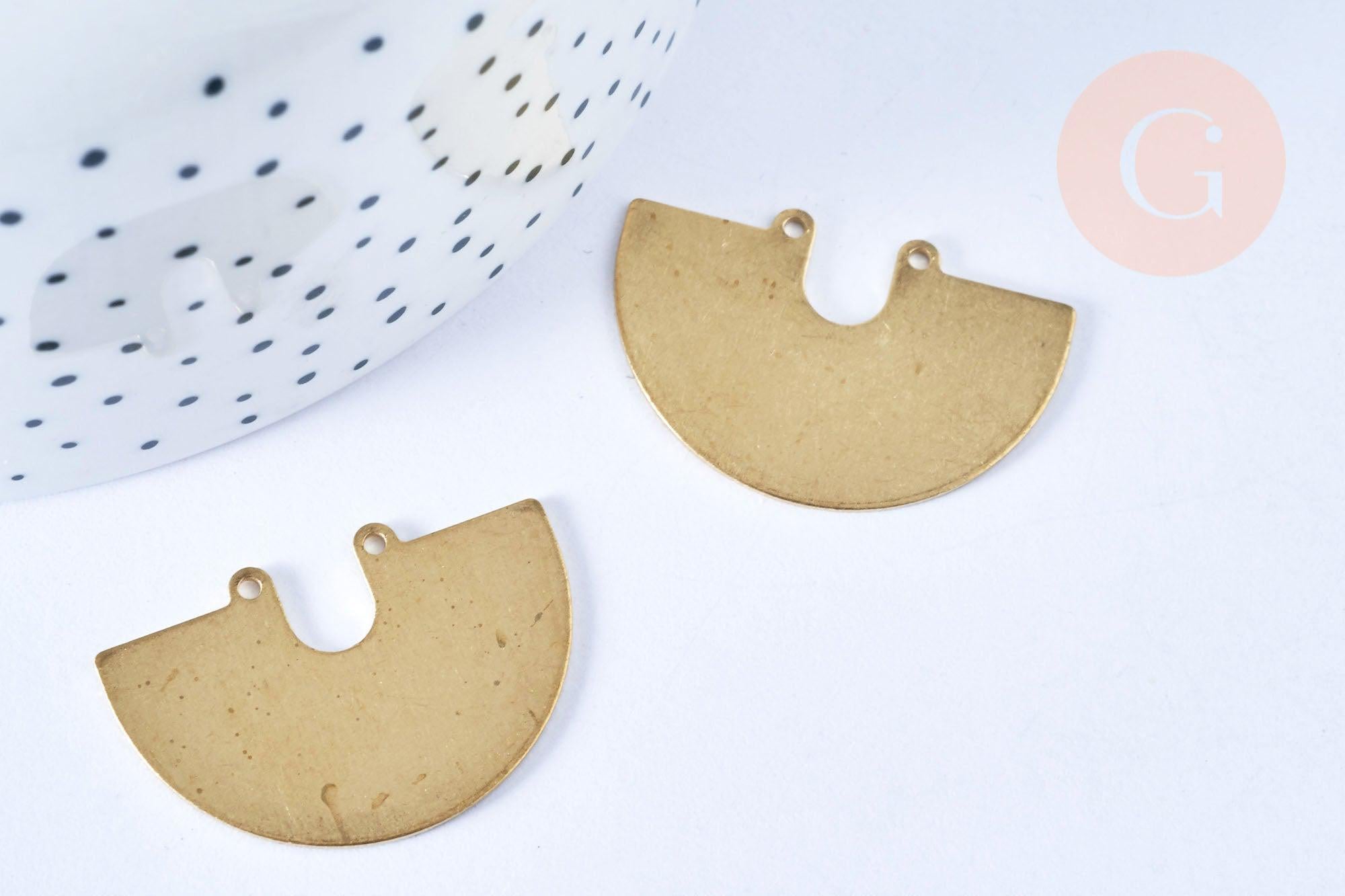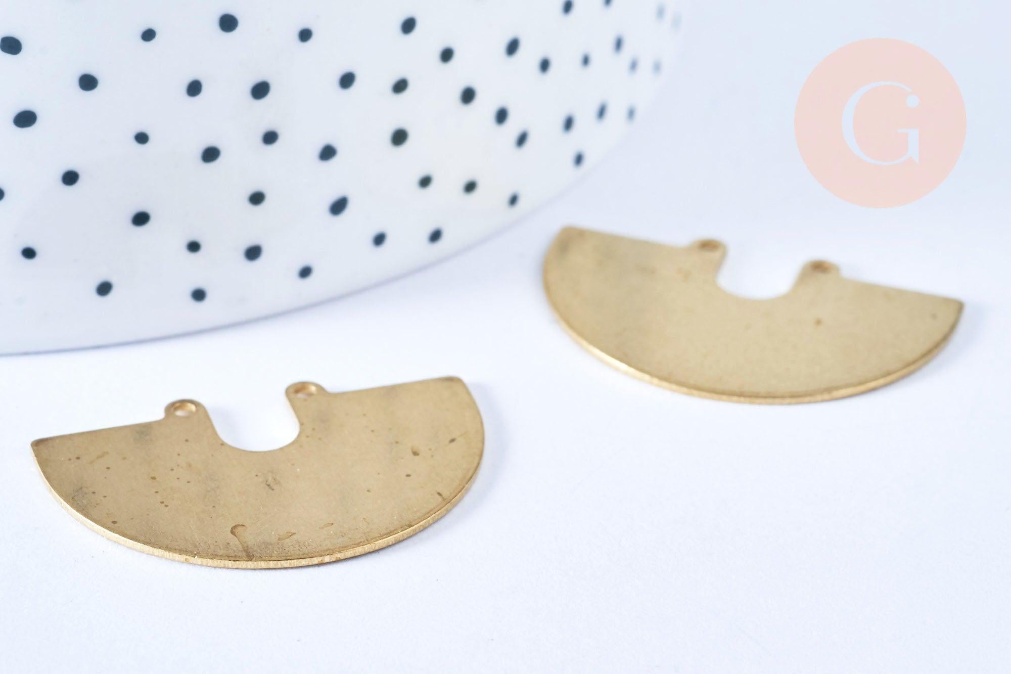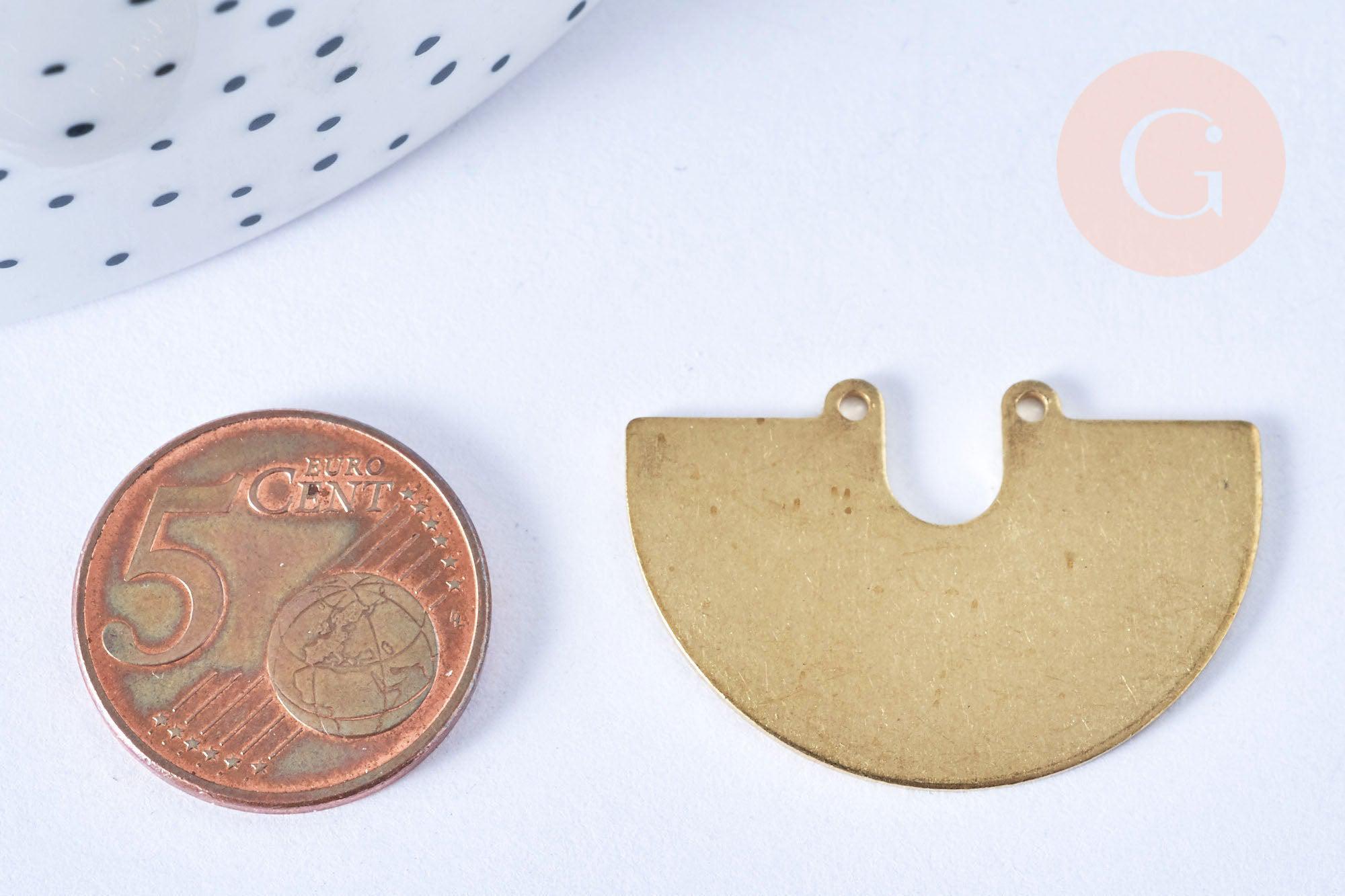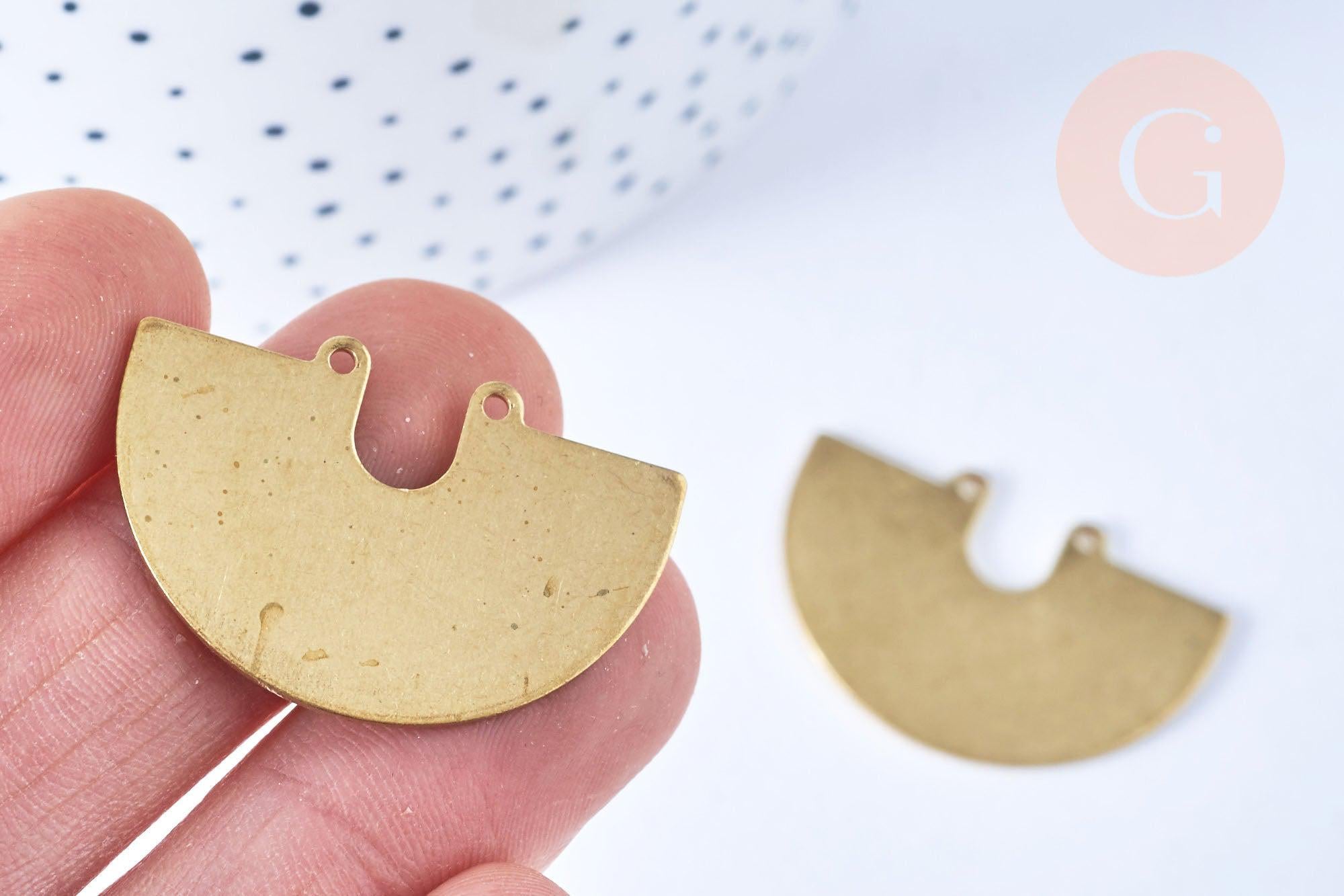 A magnificent half-circle raw brass pendant , ethnically inspired, fitted with two rings.