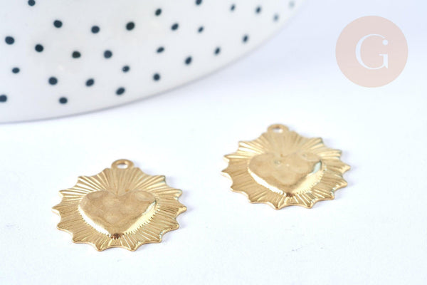 Pendentif médaille coeur laiton brut 23x20mm, x2 (G6924)