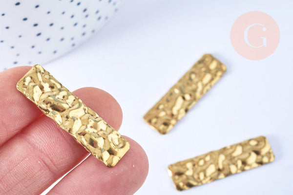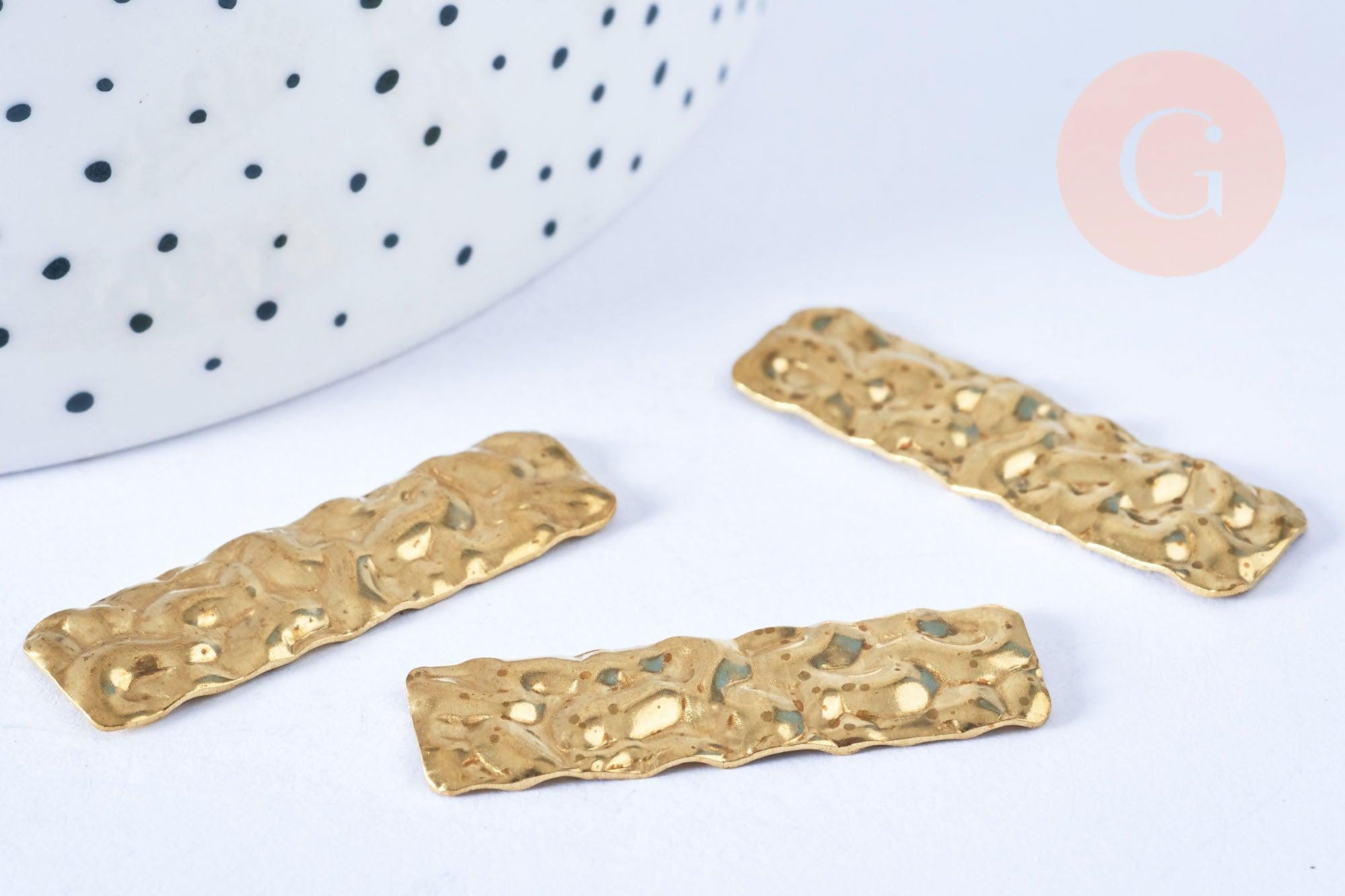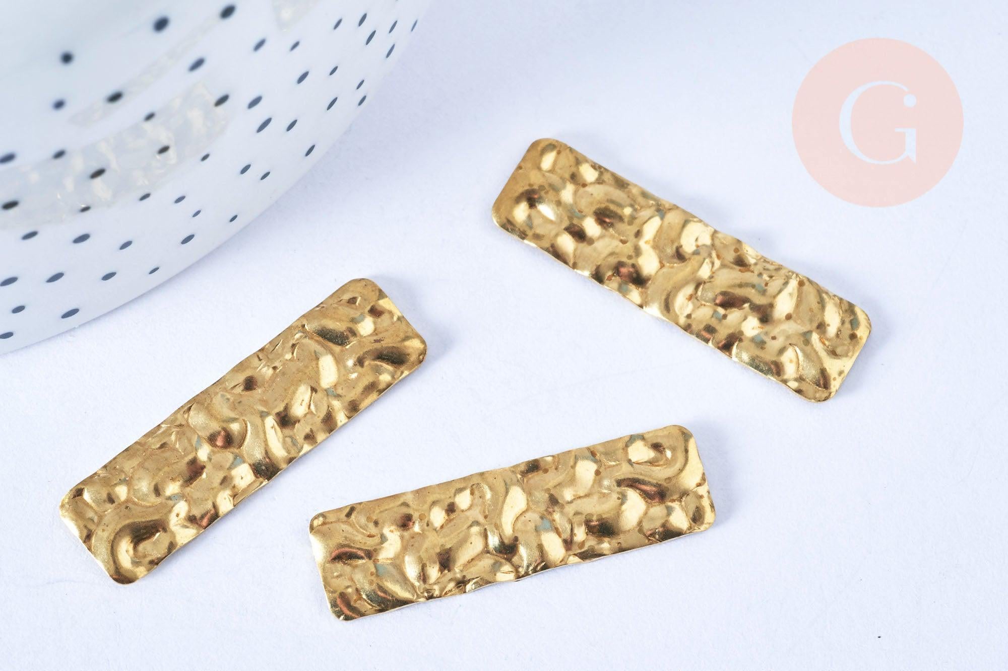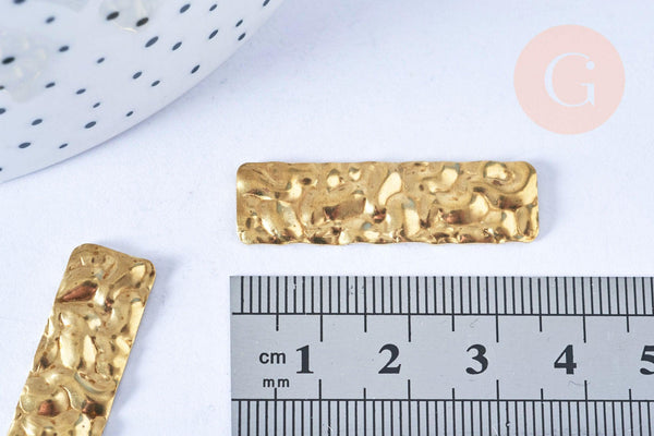 Pendentif rectangle martelé laiton brut non percé 35x10mm , x1 (G6540)