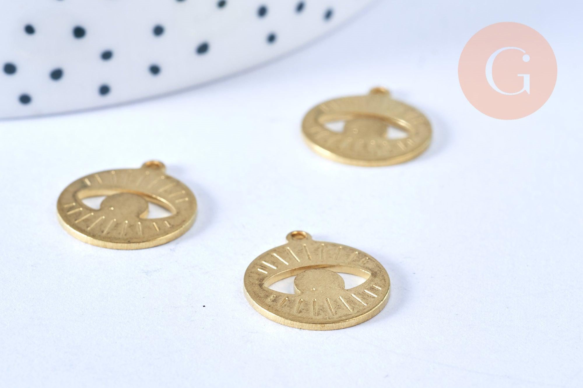 Fall for this round mystical eye pendant in raw brass , easy-to-use charms for all your DIY jewelry .