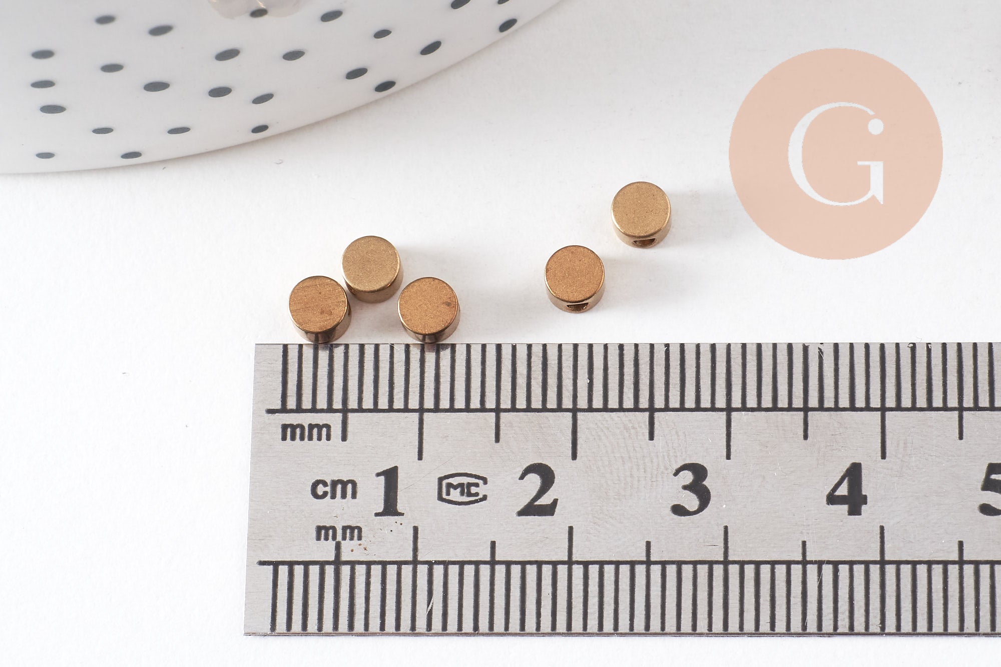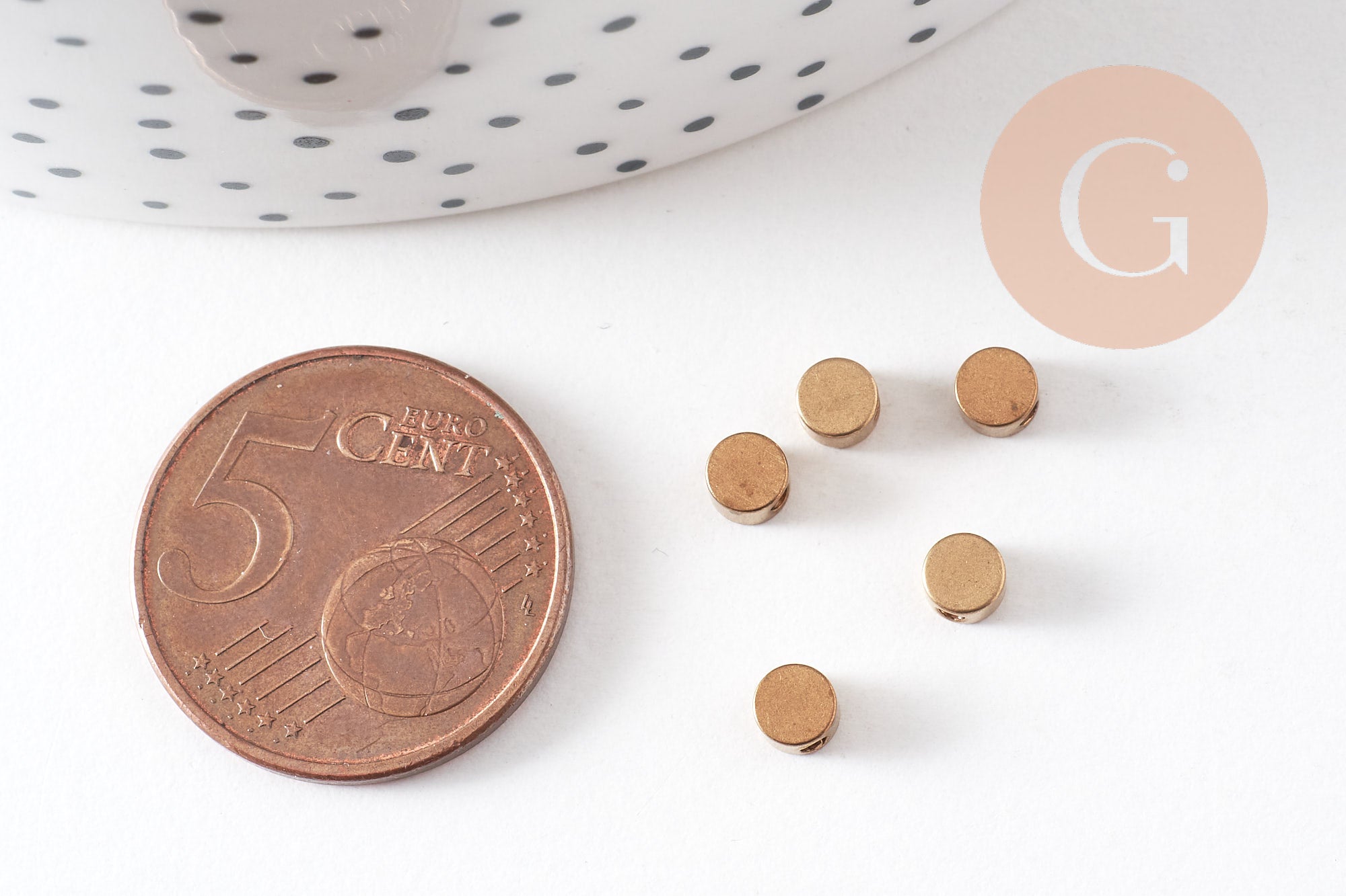 To adopt the geometric trend , opt for these small raw brass disc beads.