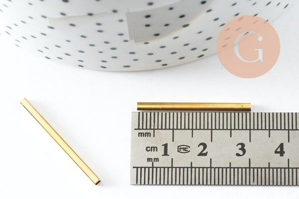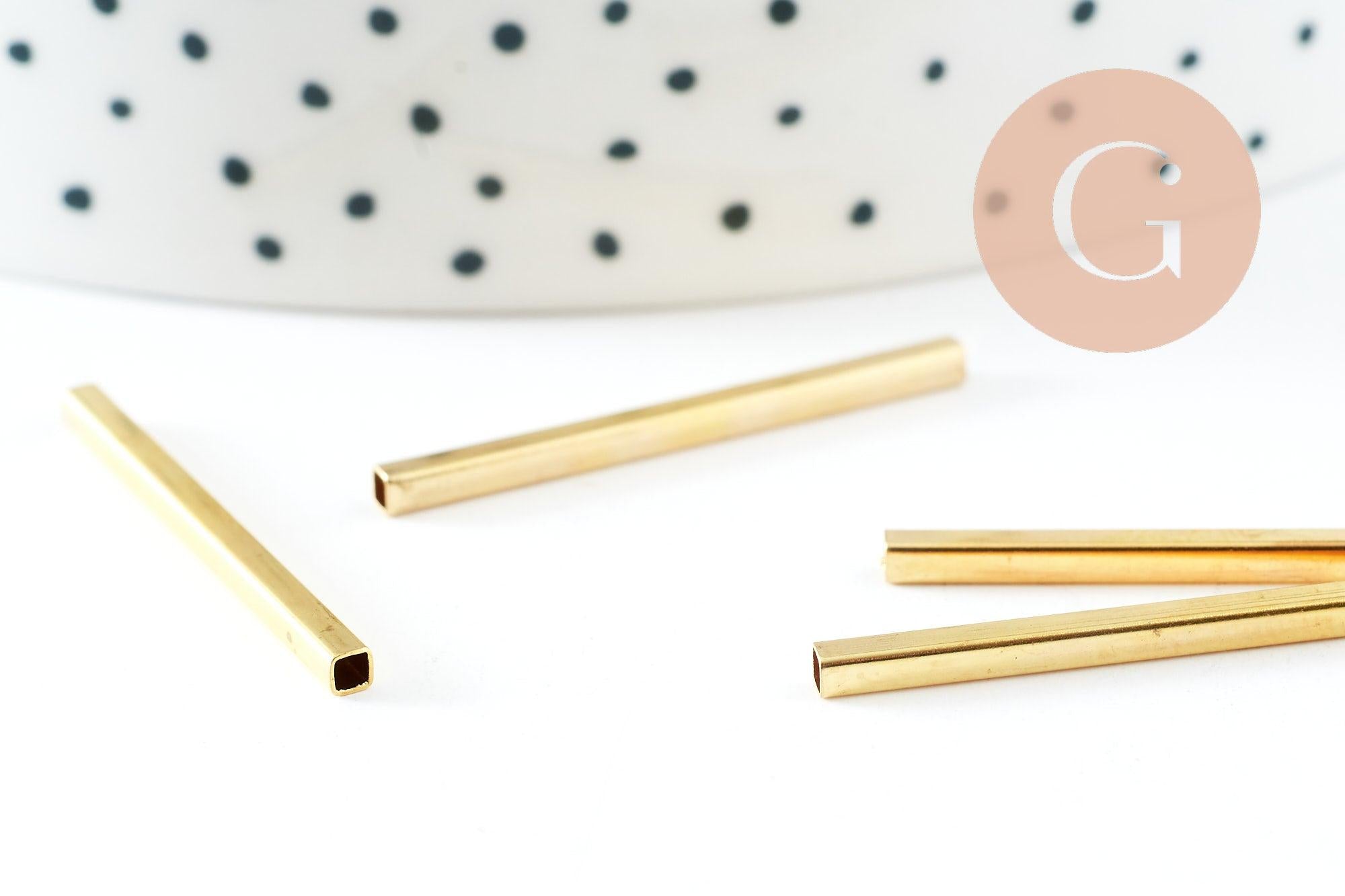 Square raw brass tubes, creative supplies, golden tube, jewelry creation, brass tube, jewelry tube, golden findings, lot of 50, 40mm