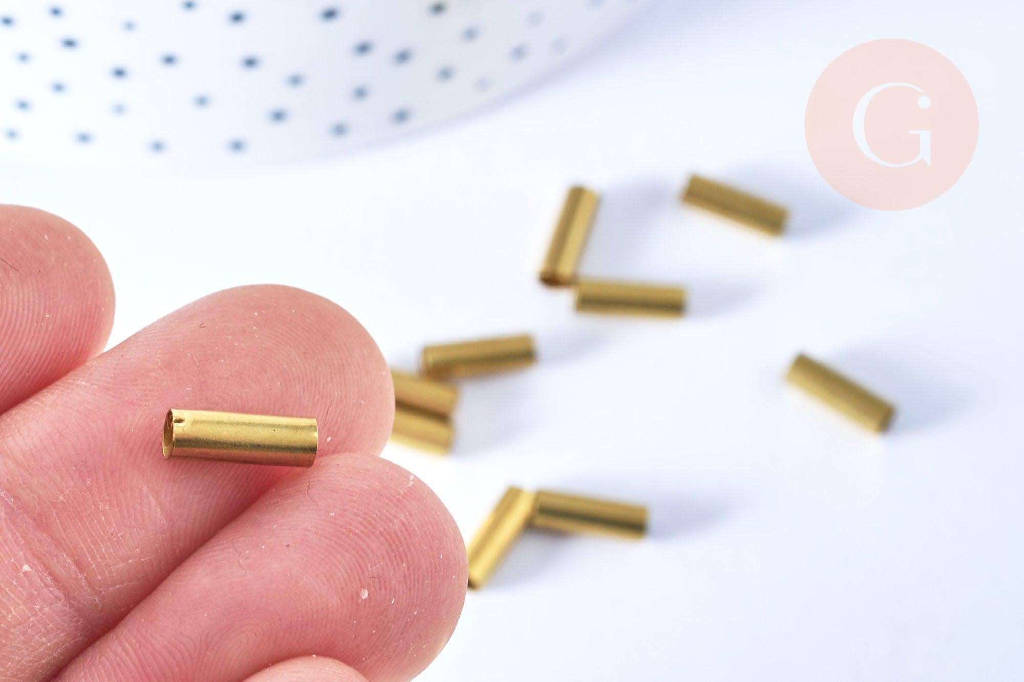 A set of 20 gold-colored tubes in raw brass, perfect for making fine and elegant jewelry.
