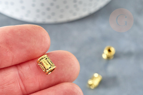 Perle tube cylindrique zamac doré vieilli 8mm, x10 (G8385)