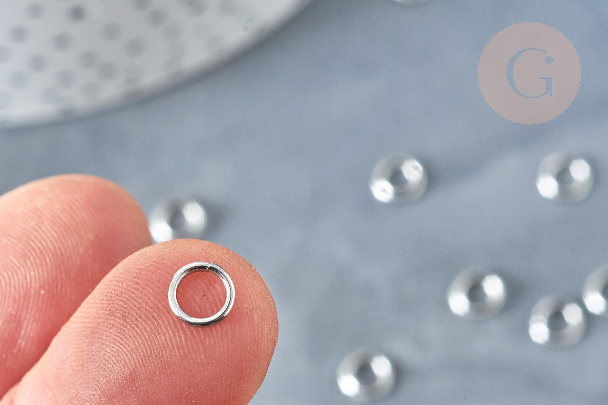 Anneaux ronds acier inoxydable platine 6mm, x5gr (G8152)