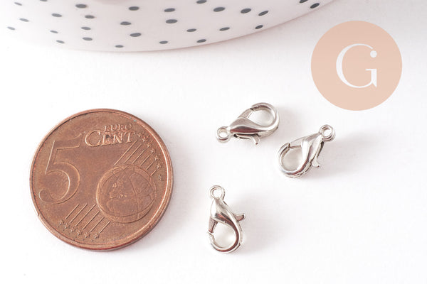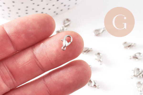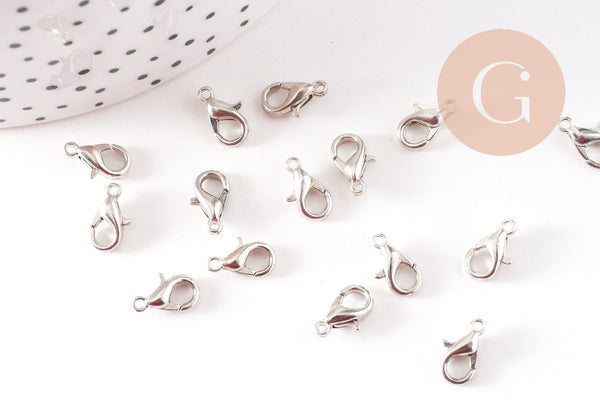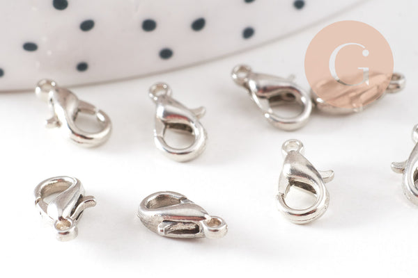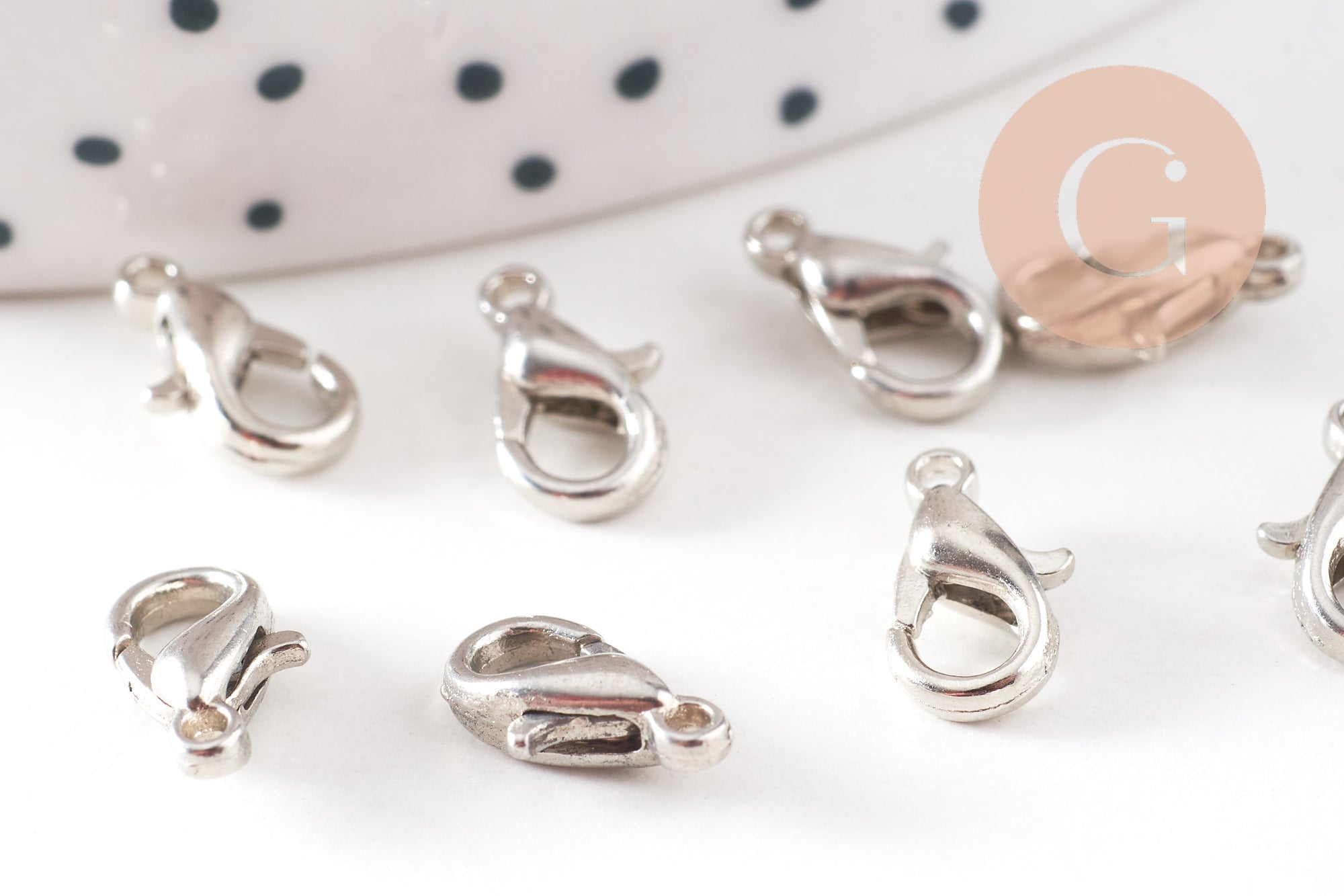 Essential for all your jewelry creations, these platinum-colored zamac lobster clasps (shiny silver appearance) offer an elegant and professional finish to your necklaces, bracelets and long necklaces.