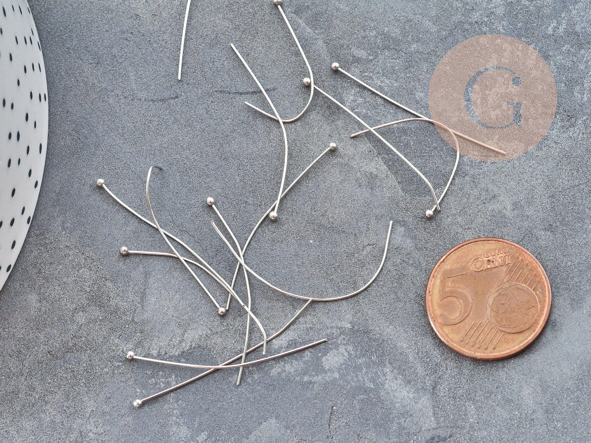 Tiges clous à tête boule laiton platine 35mm, x50 (G10019)