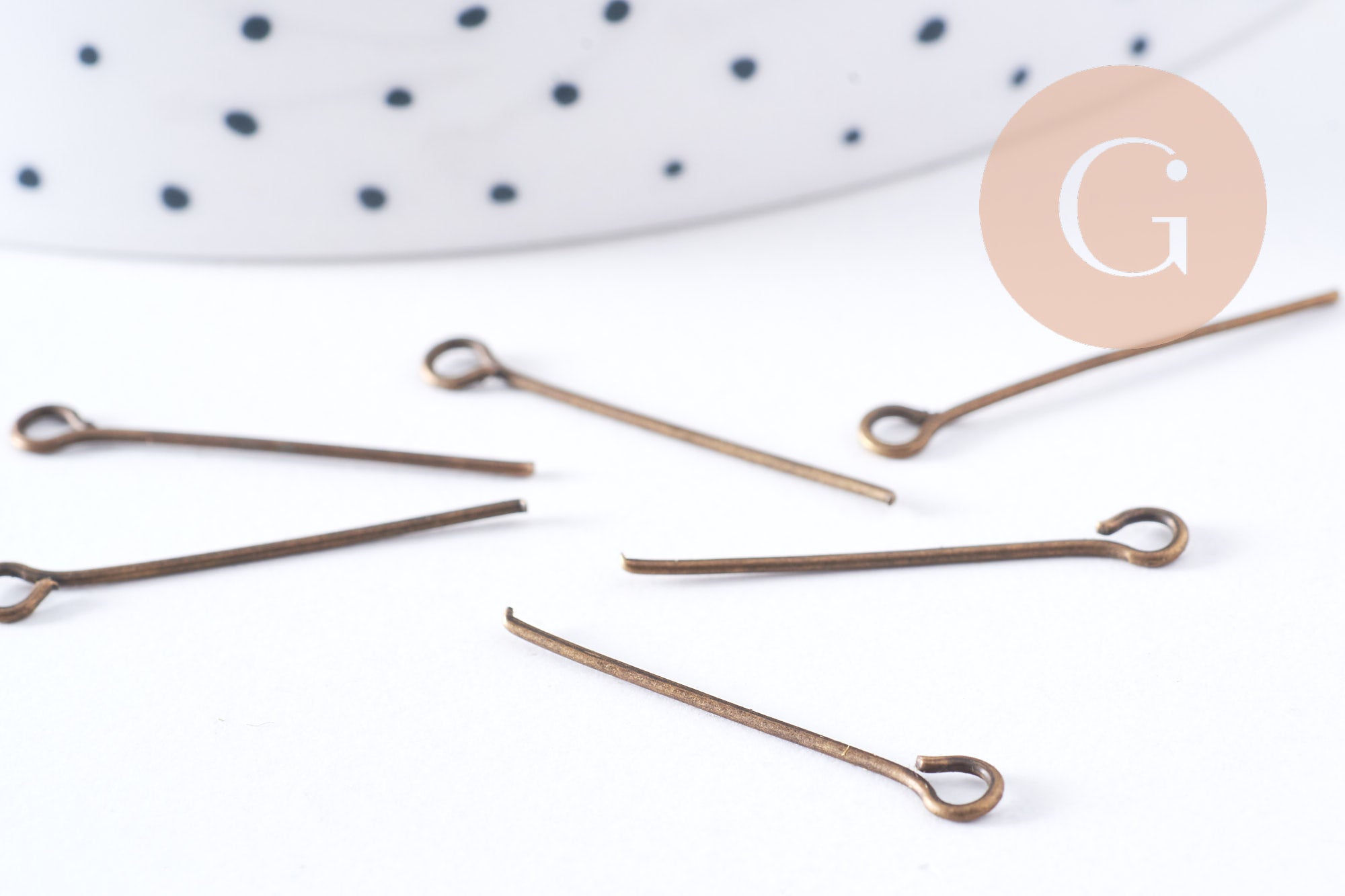 Clou tige tête boucle fer bronze 24mm, x10Gr (G10660)