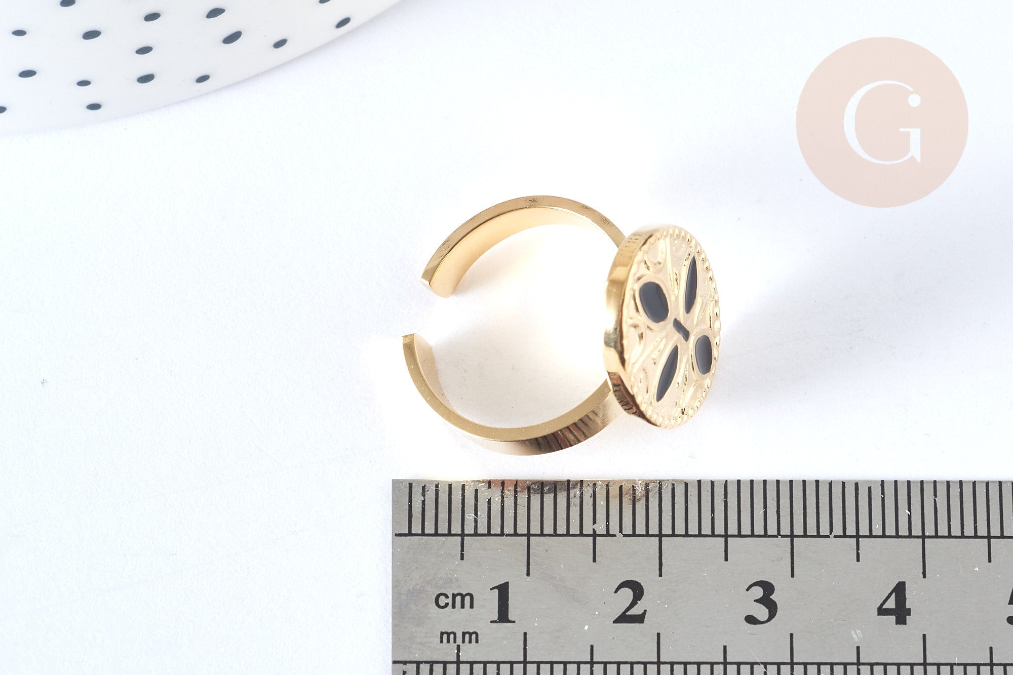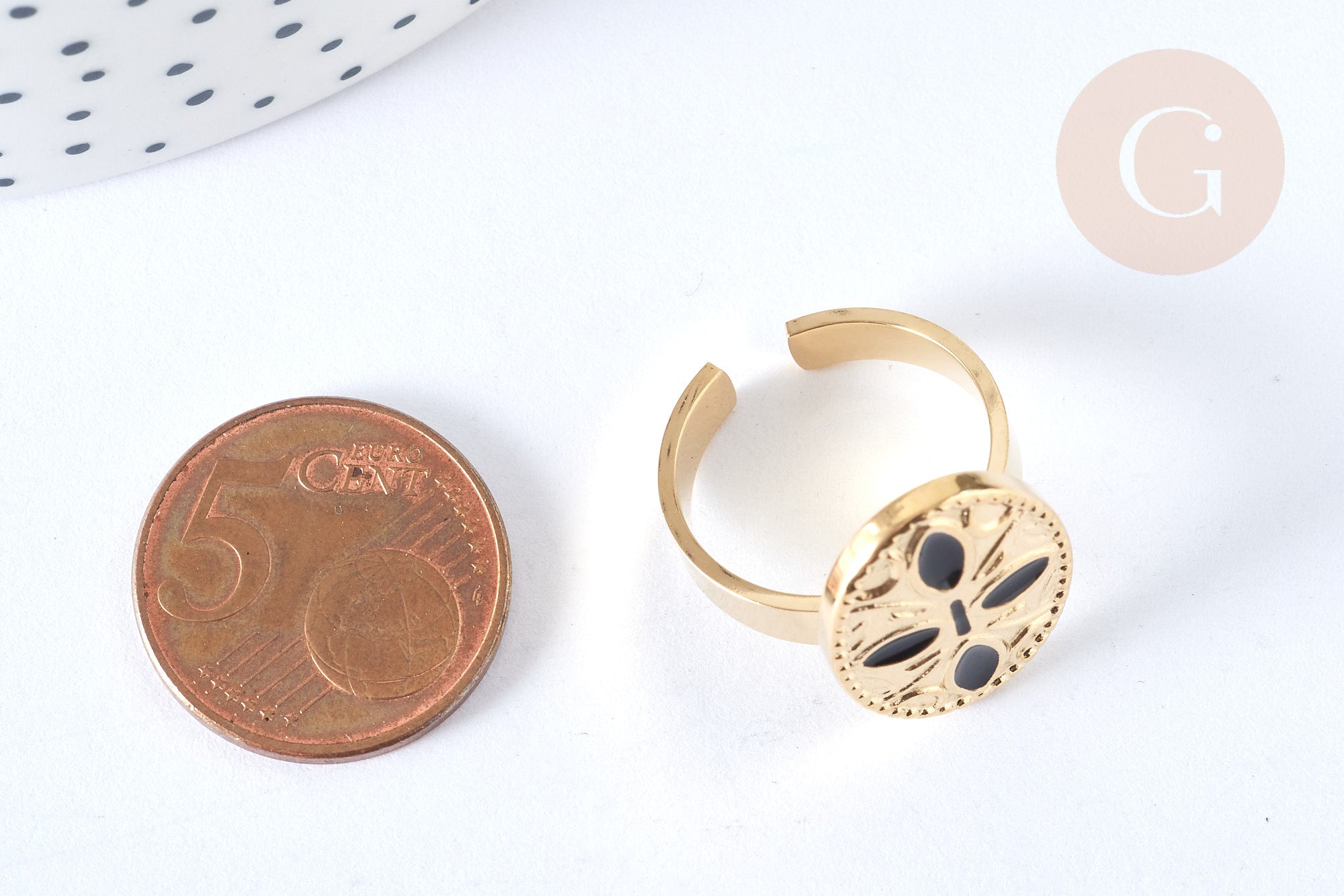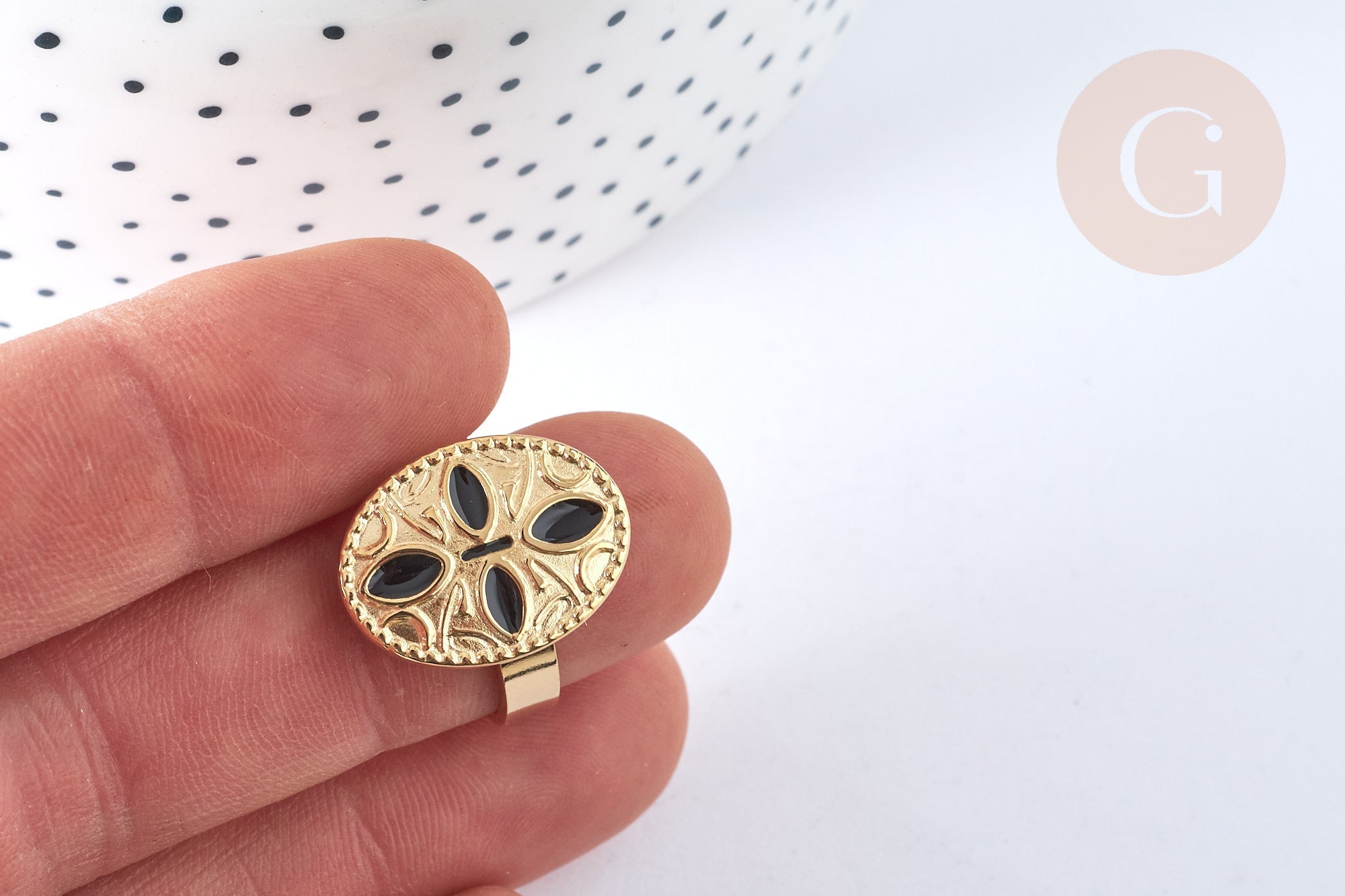 A lovely black resin enamel ring with a flower motif, adjustable in stainless steel . A timeless piece of jewelry that will accompany you every day.