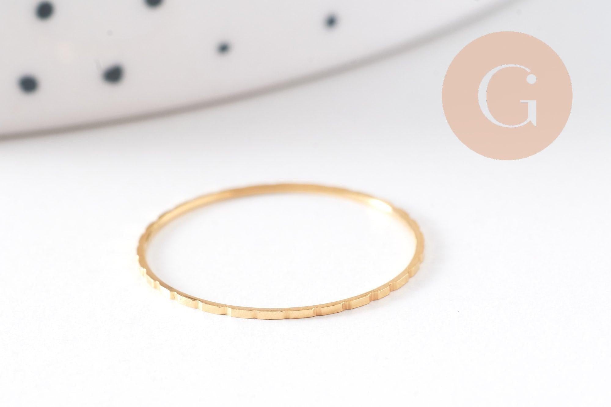 Fall for this very fine ring in gold-plated stainless steel , delicately grooved for a discreet but elegant textured effect. With its thickness of only 1 mm , it is ideal to wear alone for a minimalist look , or in accumulation with other fine rings for a modern and refined effect.