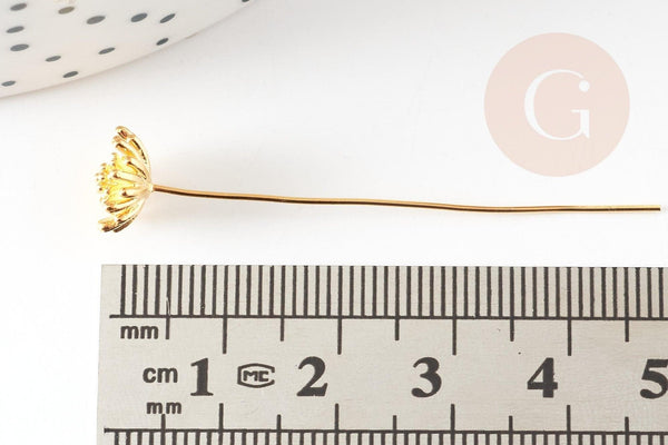 Tige Fleur Marguerite laiton doré 54mm, x1 (G9297)