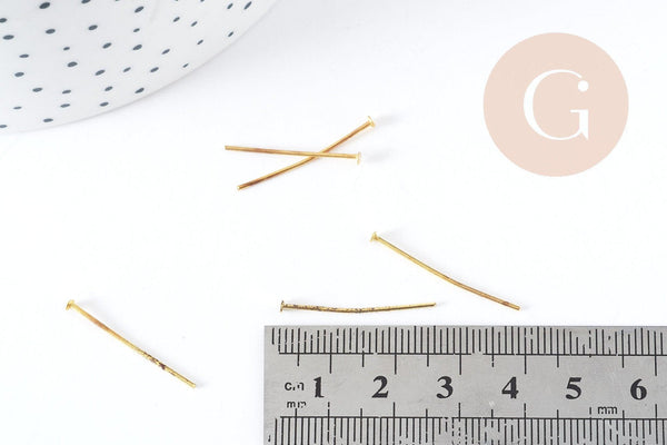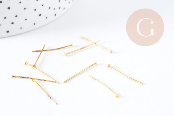 Here are some 25mm gold nail head rods for making many costume jewelry pieces . These are essential findings for jewelry making that allow you to make charms and pendants and/or thread beads and stones.