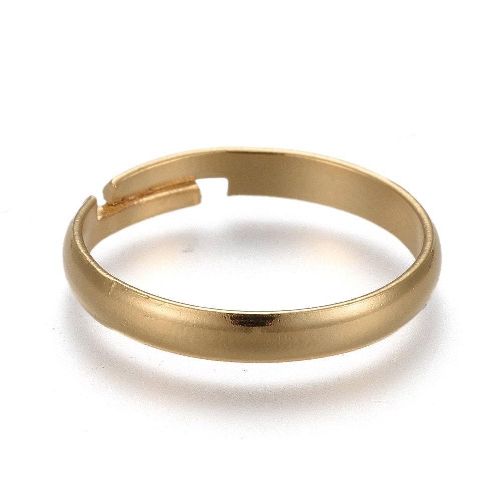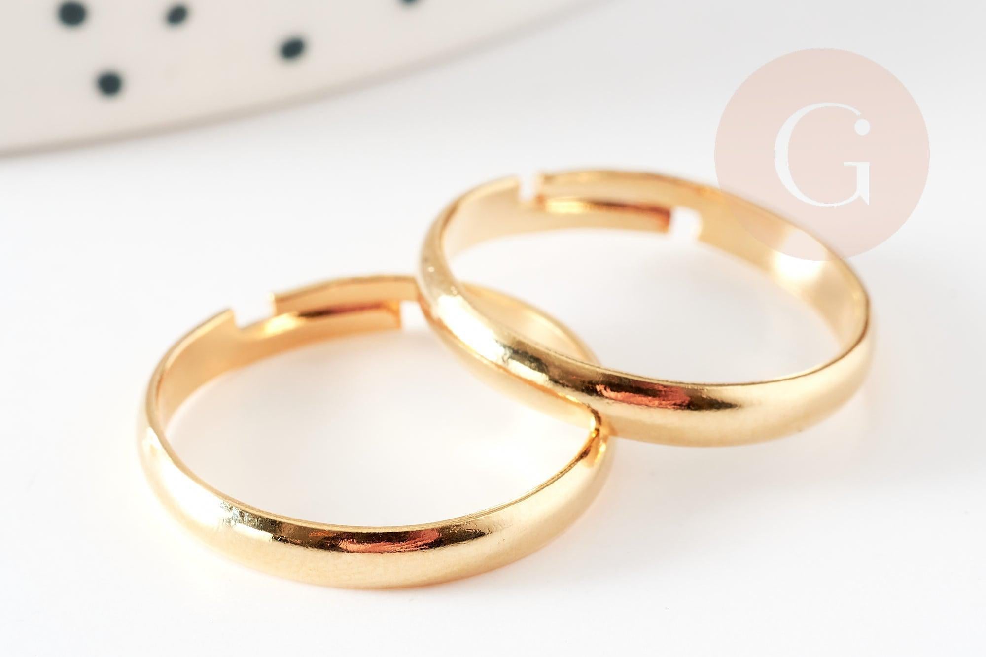 Bague réglable personnalisable acier doré inoxydable 18mm, x2 (G6059)