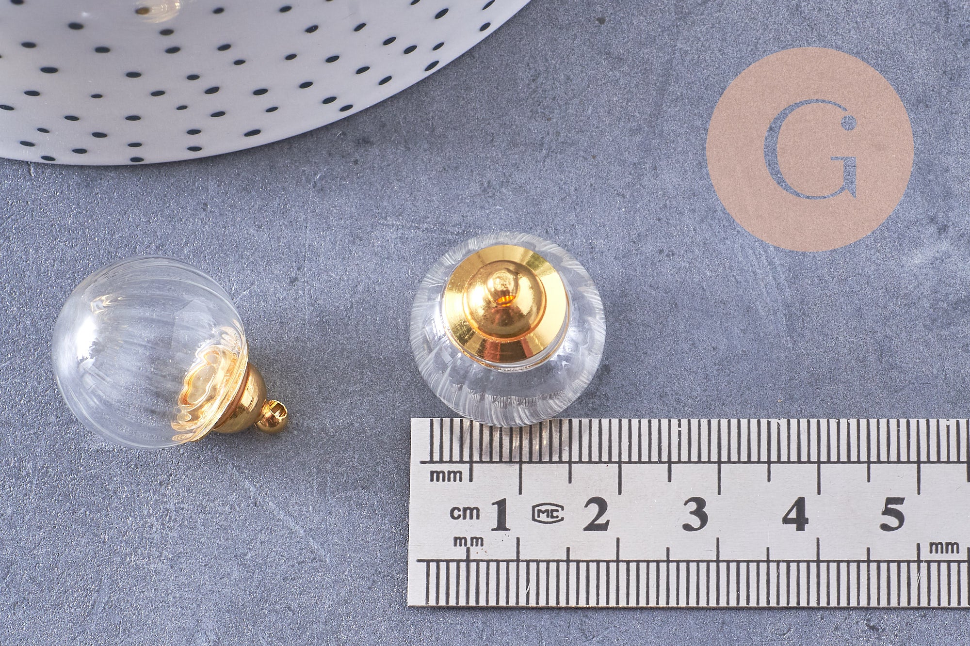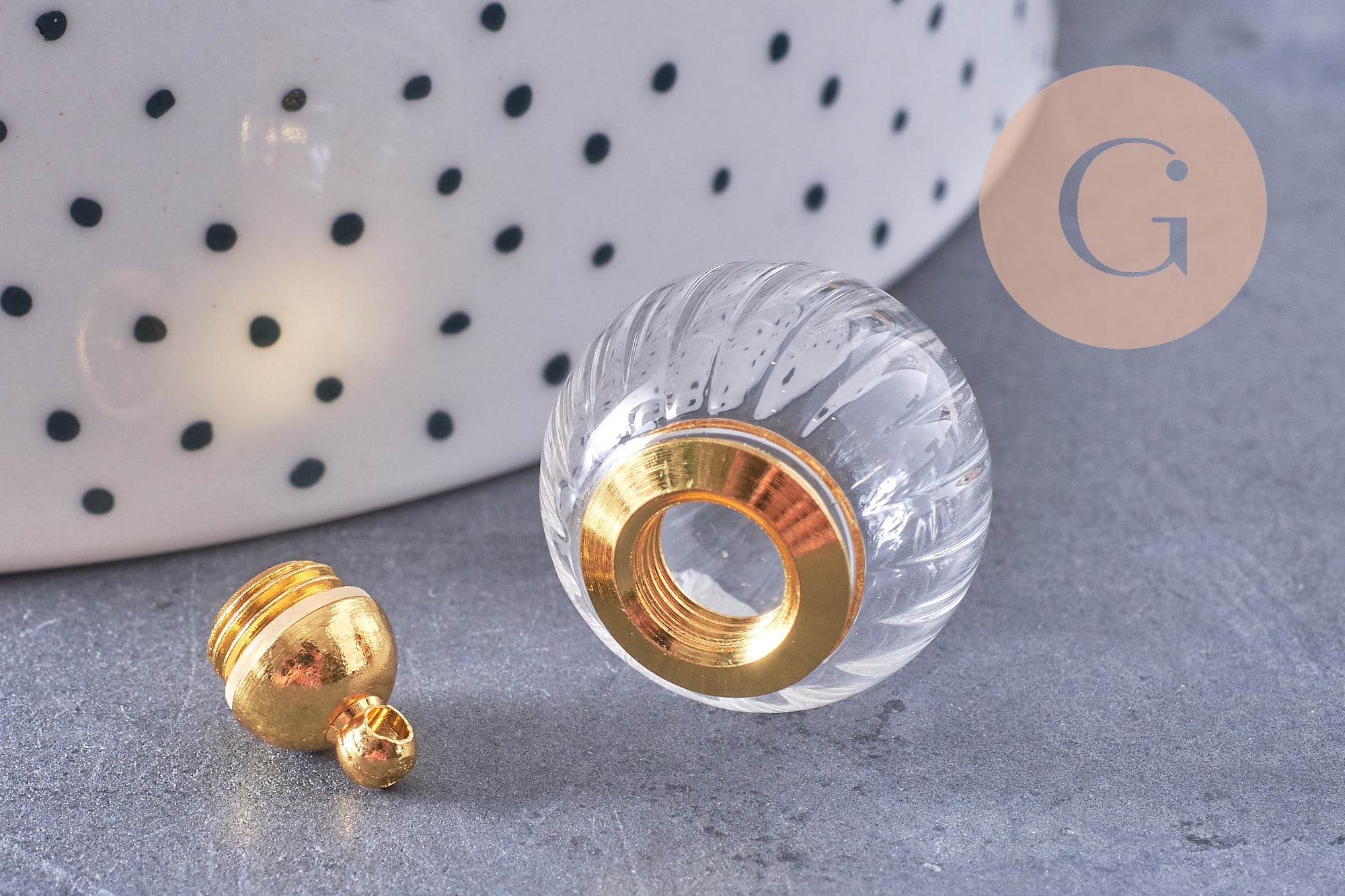 • Material: transparent glass + gold-plated brass cap
