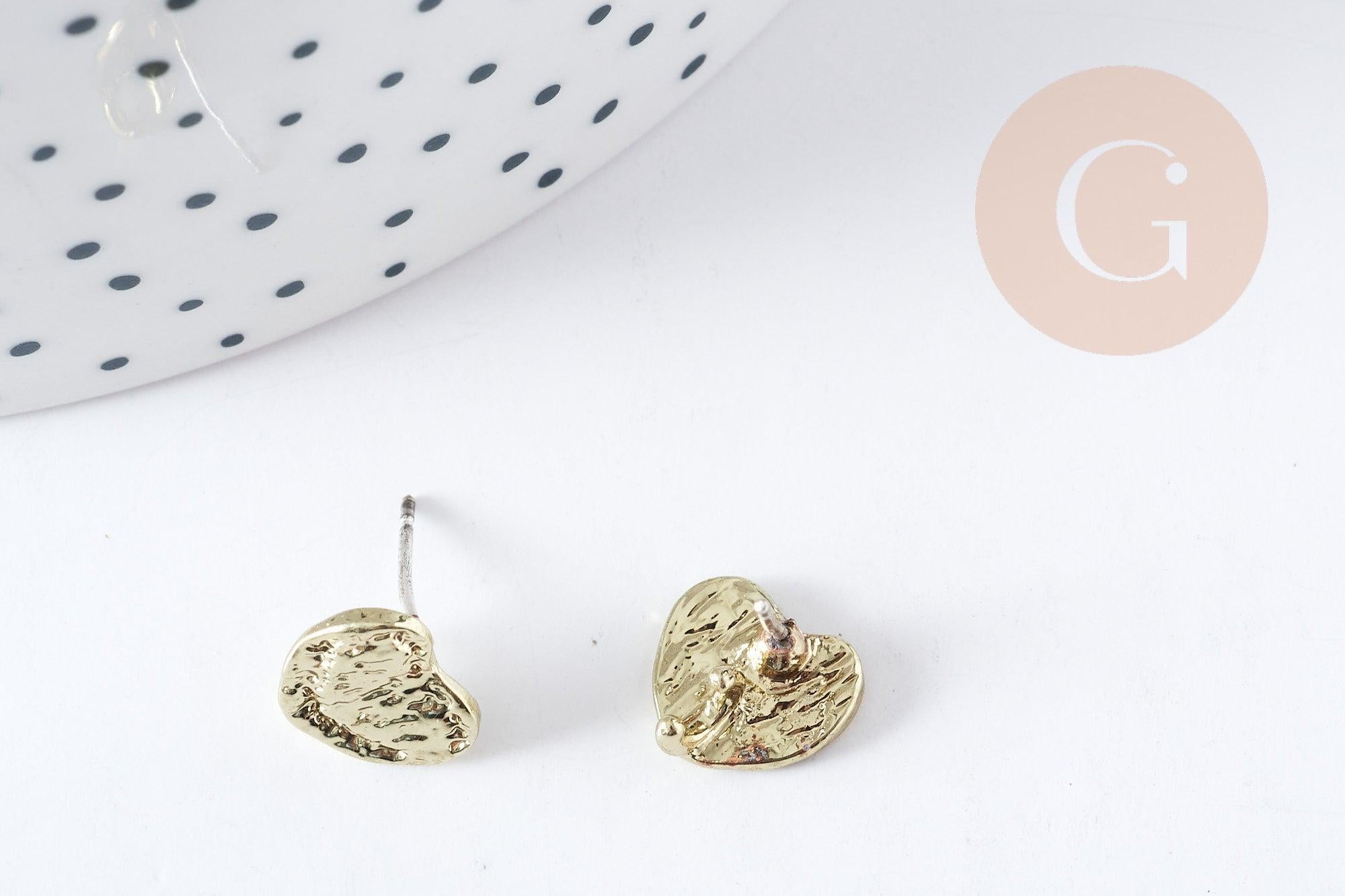 Support for heart shaped stud earrings in gold zamac, 10mm, pair G8888.