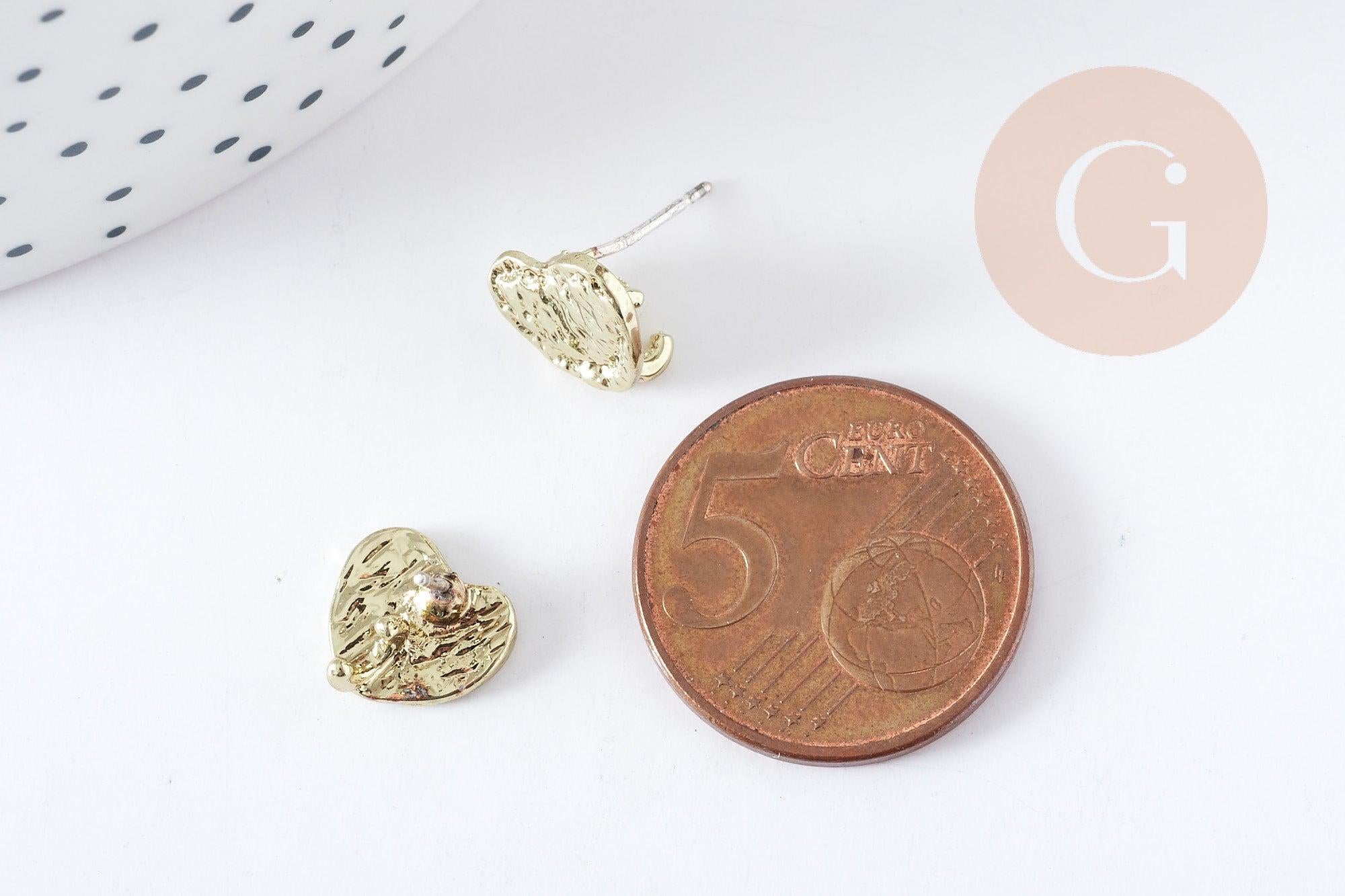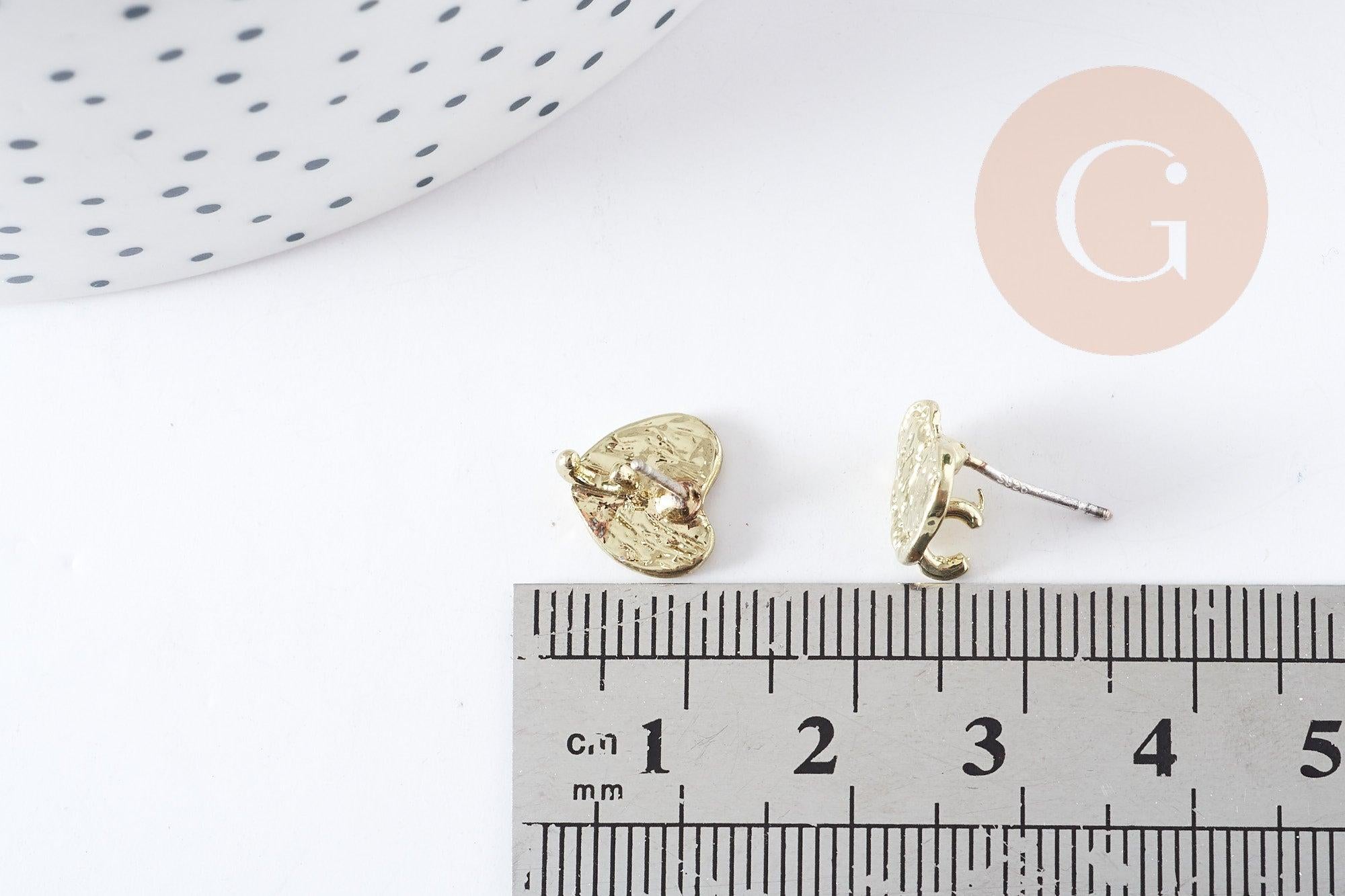 Support for heart shaped stud earrings in gold zamac, 10mm, pair