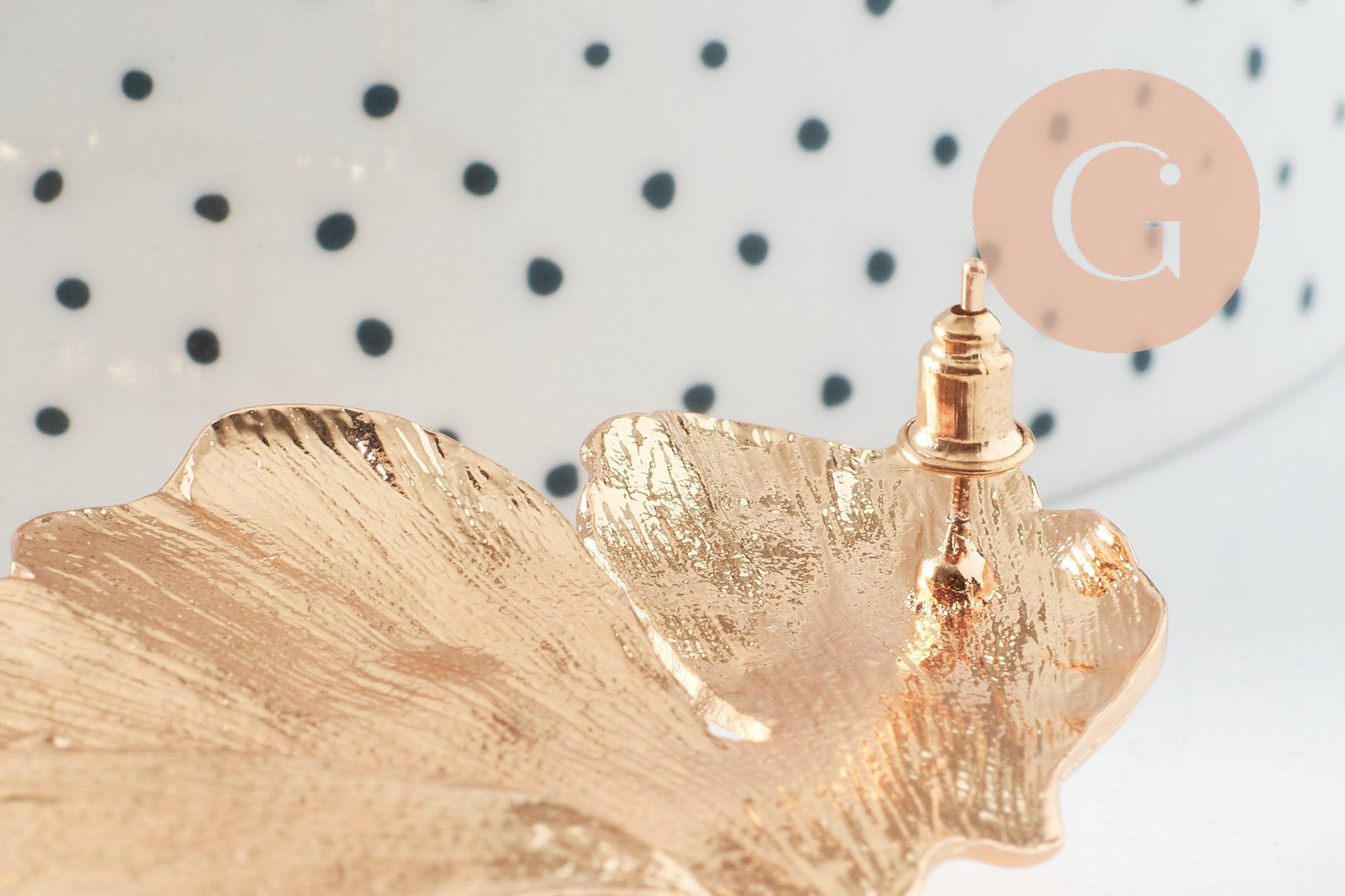 Boucles fleur Gingko XXL zamac doré, la paire (G9652)