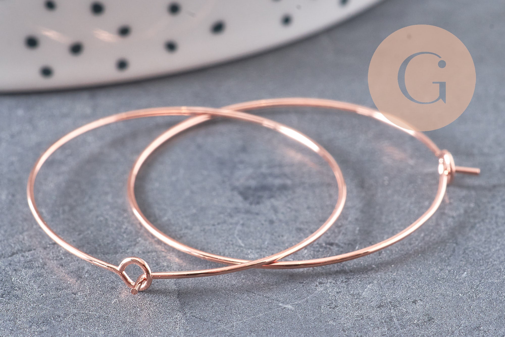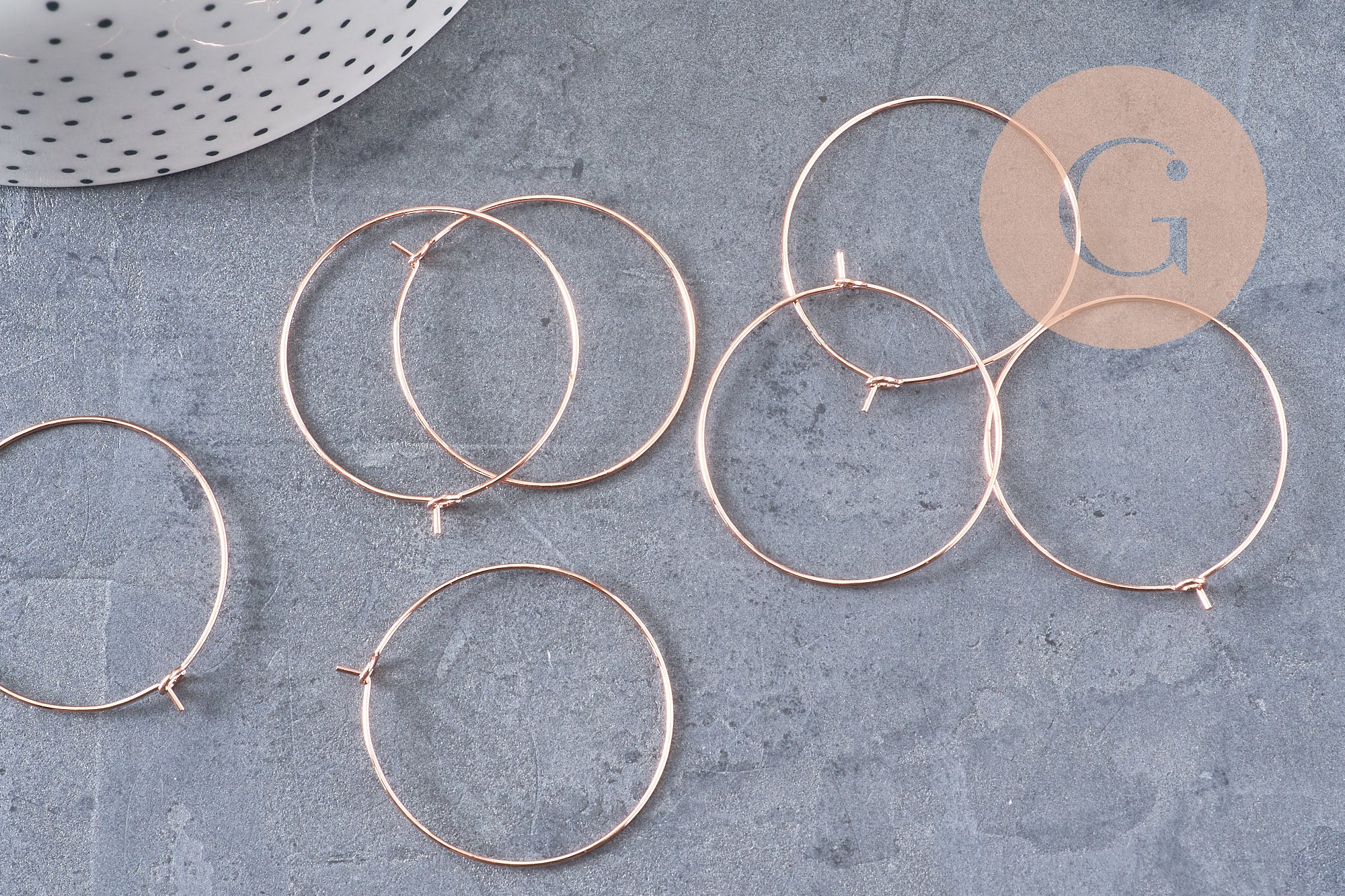 Set of 10 rose gold-style brass hoop rings 35mm nickel cadmium free G6991.