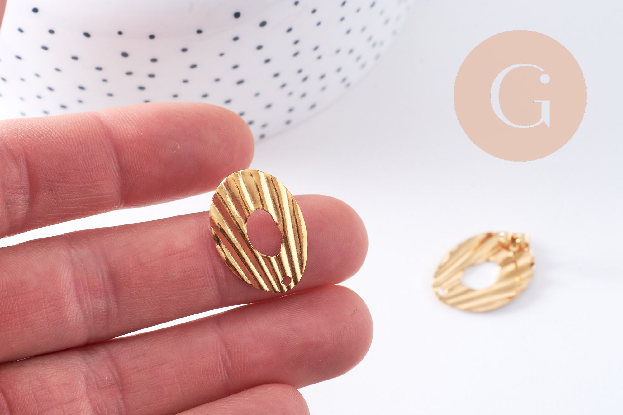 Add a chic and graphic touch to your creations with these ridged oval stud earrings in gold-plated 304 stainless steel . Their elegant oval shape and grooved texture give them a modern and refined look, perfect for minimalist or sophisticated creations.