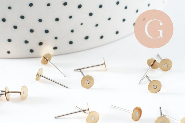 To make your own earrings, here is a set of 50 raw gold-plated brass ear studs and a stainless steel post for great comfort and a reduced risk of allergy.
