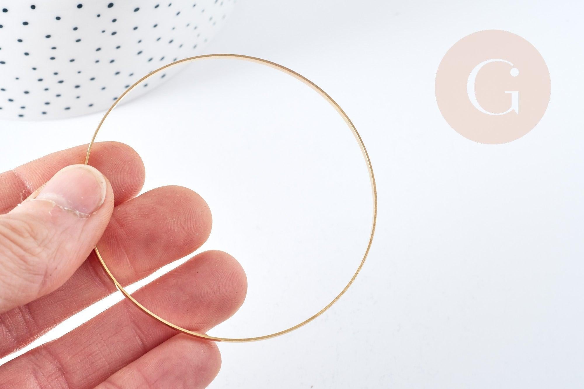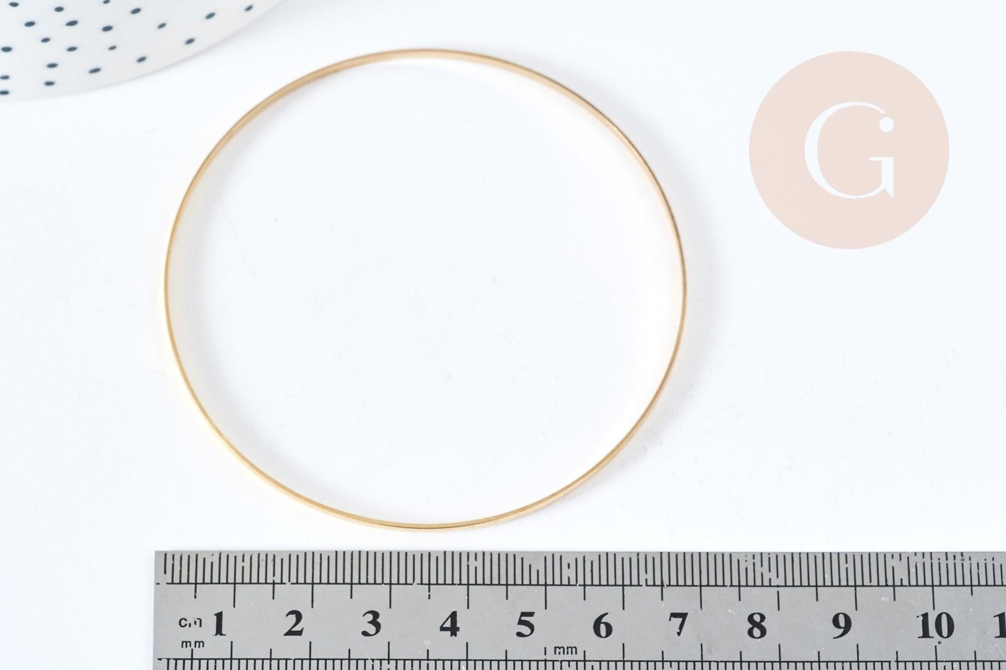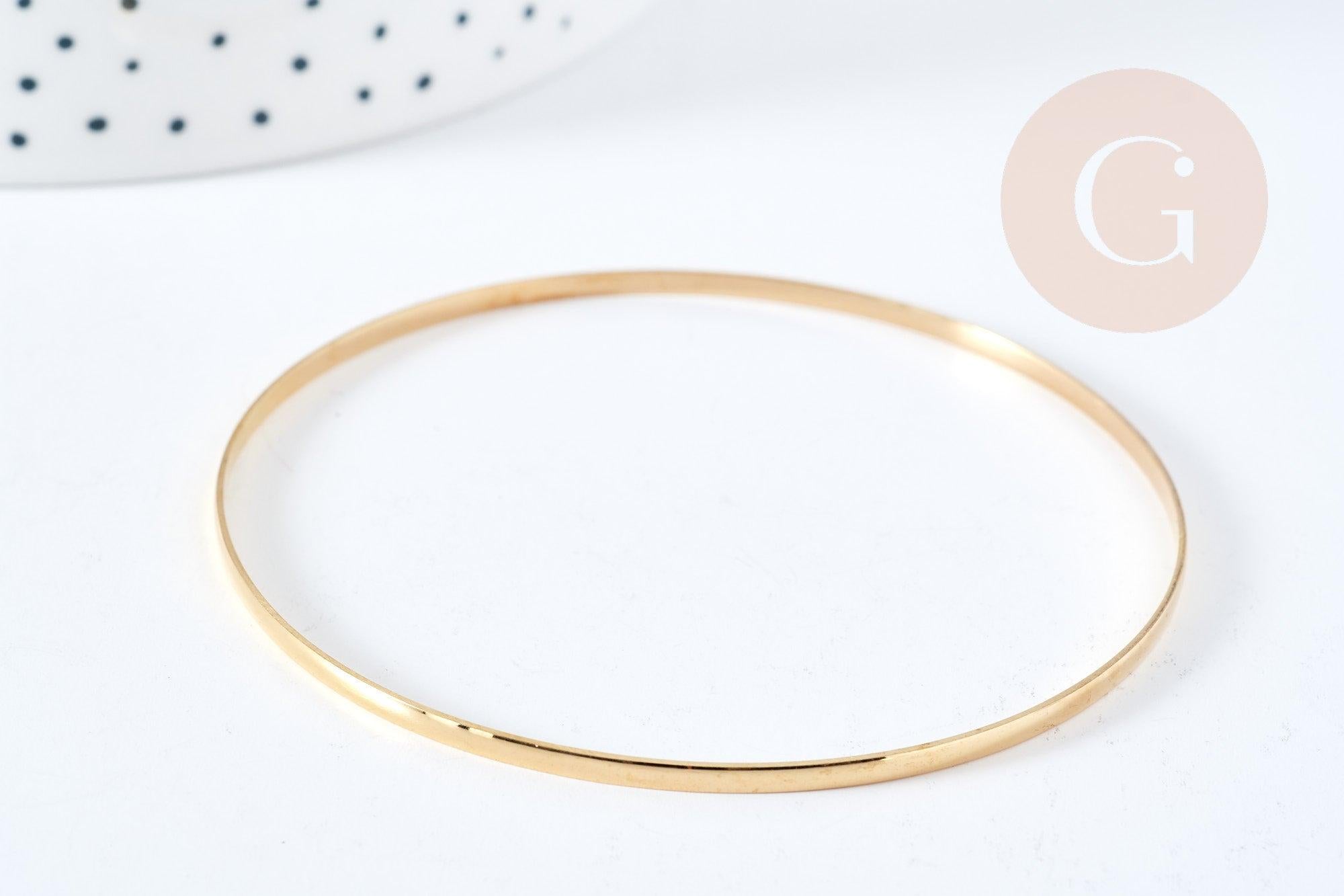This smooth 2.5mm thin bracelet in 14K gold-plated brass is an ideal bracelet base for creating elegant and trendy costume jewelry. The smooth, shiny surface of the bracelet makes it easy to personalize with charms, beads or other decorative elements.