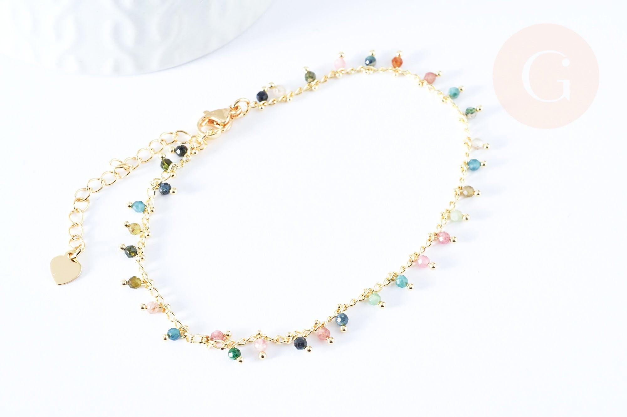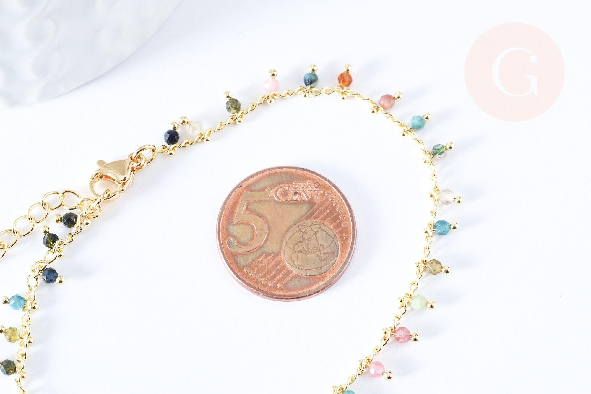 Let yourself be seduced by this adjustable charm bracelet with tourmaline on a golden brass chain. This one is already equipped with a carabiner for easy attachment. Wear it on your wrist without fear of losing it!