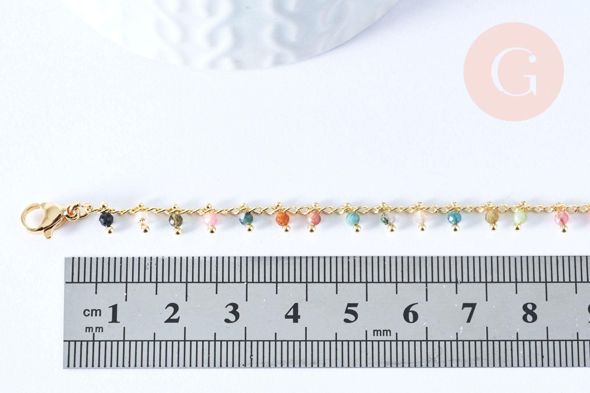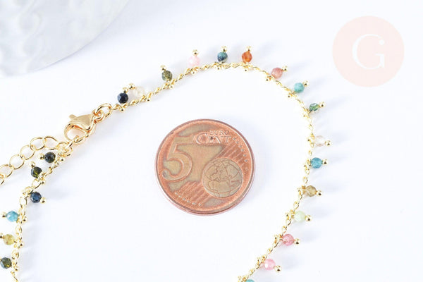 Adjustable bracelet tourmaline beads gold-plated brass 19cm, x1 (G6978)
