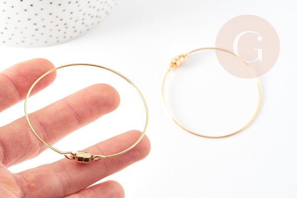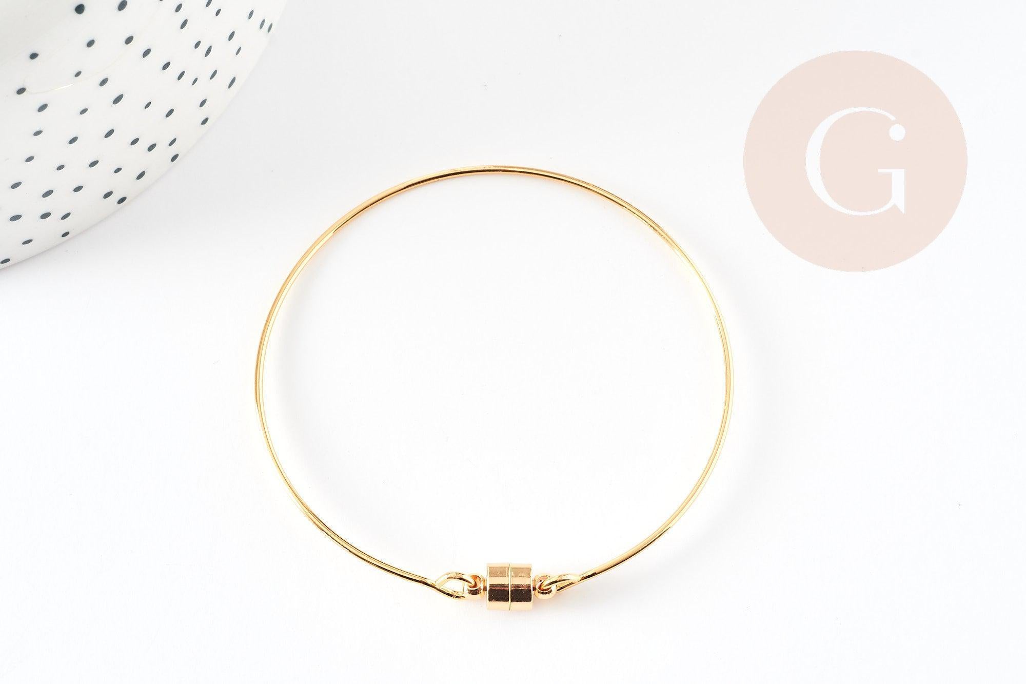 Bangle bracelet with magnetic clasp in gold-plated brass, 60mm, x1 (G9186)