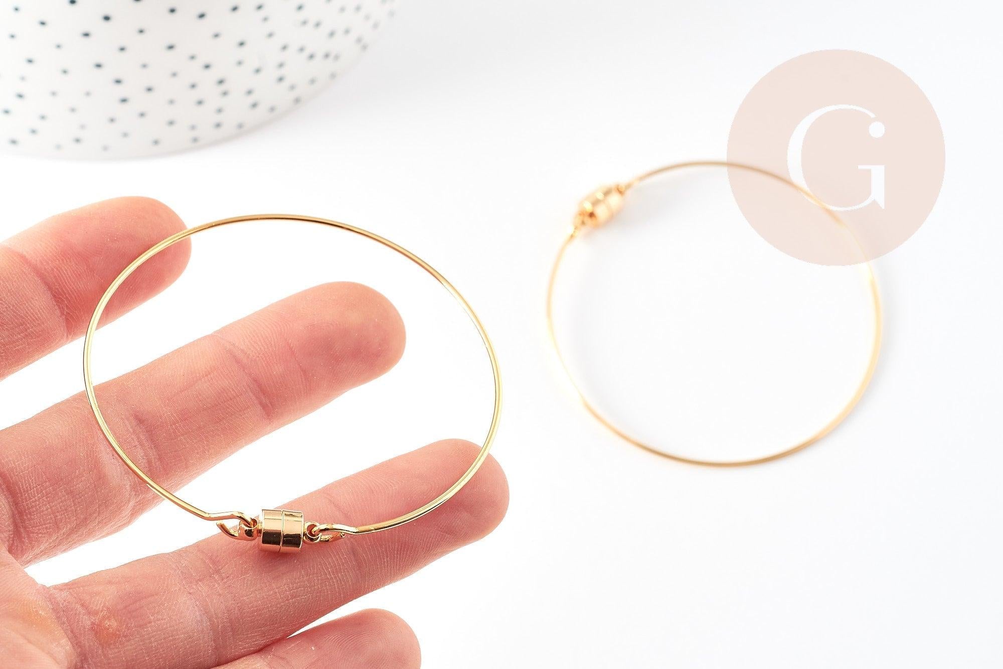 Express your style with our bangle bracelet featuring a gold-tone brass magnetic clasp. With a comfortable 60mm diameter, this elegant and practical bracelet is perfect for creative customization . Its magnetic design offers ease of use, while adding a refined touch to your wrist.