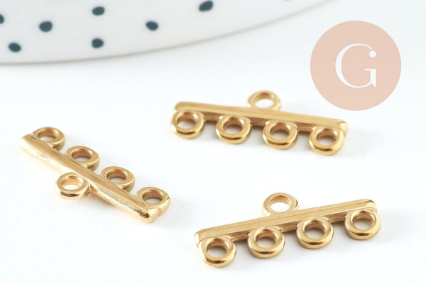 Connecteur Intercalaire bracelet 5 rangs acier 304 inoxydable doré 19mm, x2 (G10738)