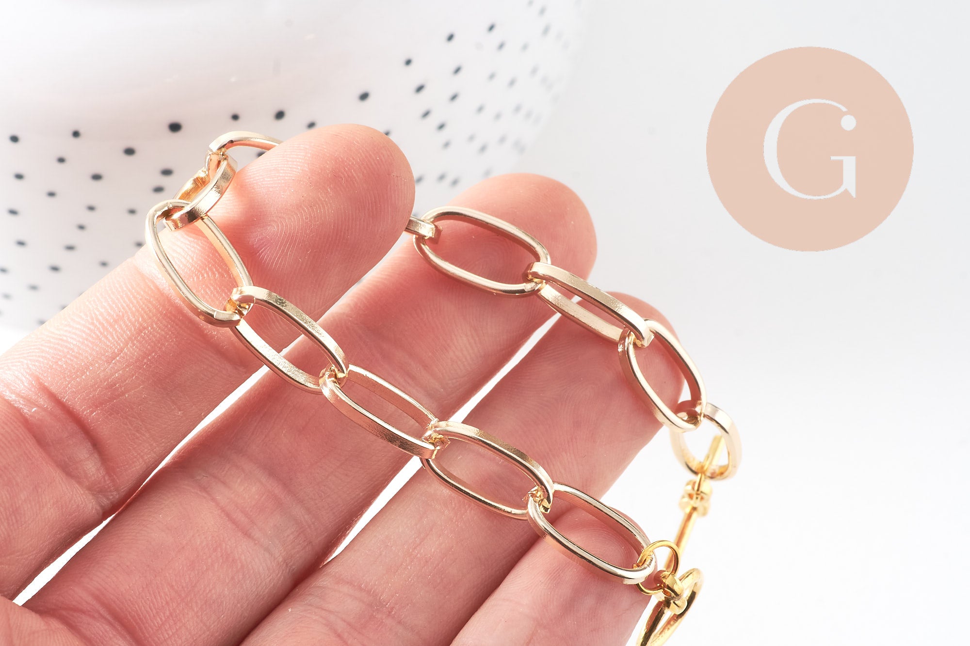 For imposing bracelets, here is a magnificent bracelet with delicately textured aluminum links and a gold zamac T clasp. To use as is or to accessorize with charms, pearls and other wonders.